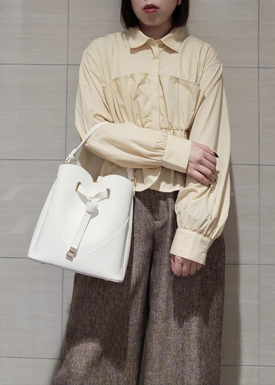 アシンメトリーな肩ストラップがアレンジしやすく、コーディネートのポイントにもなります♪ -