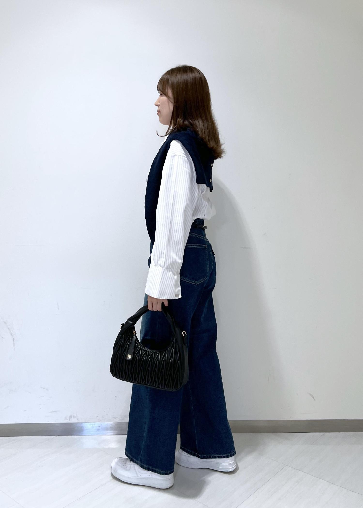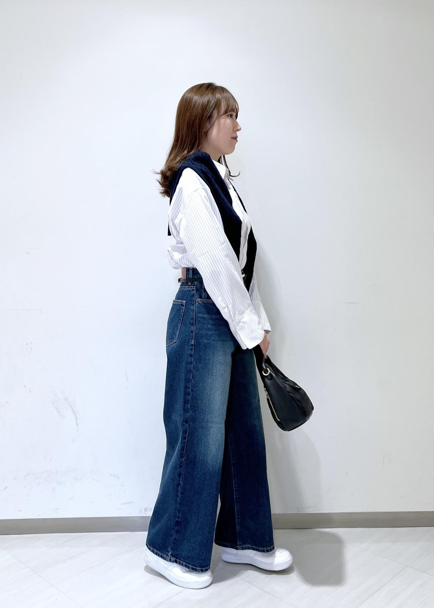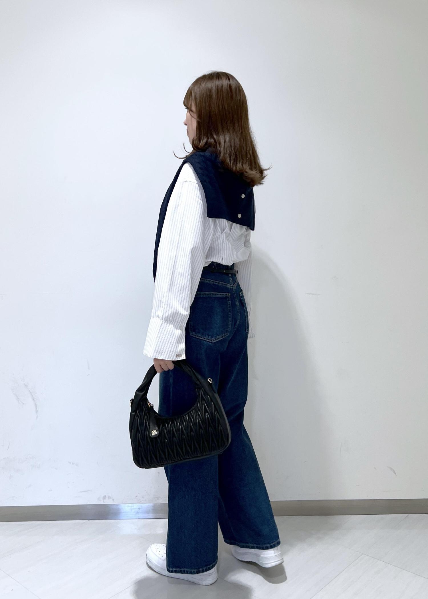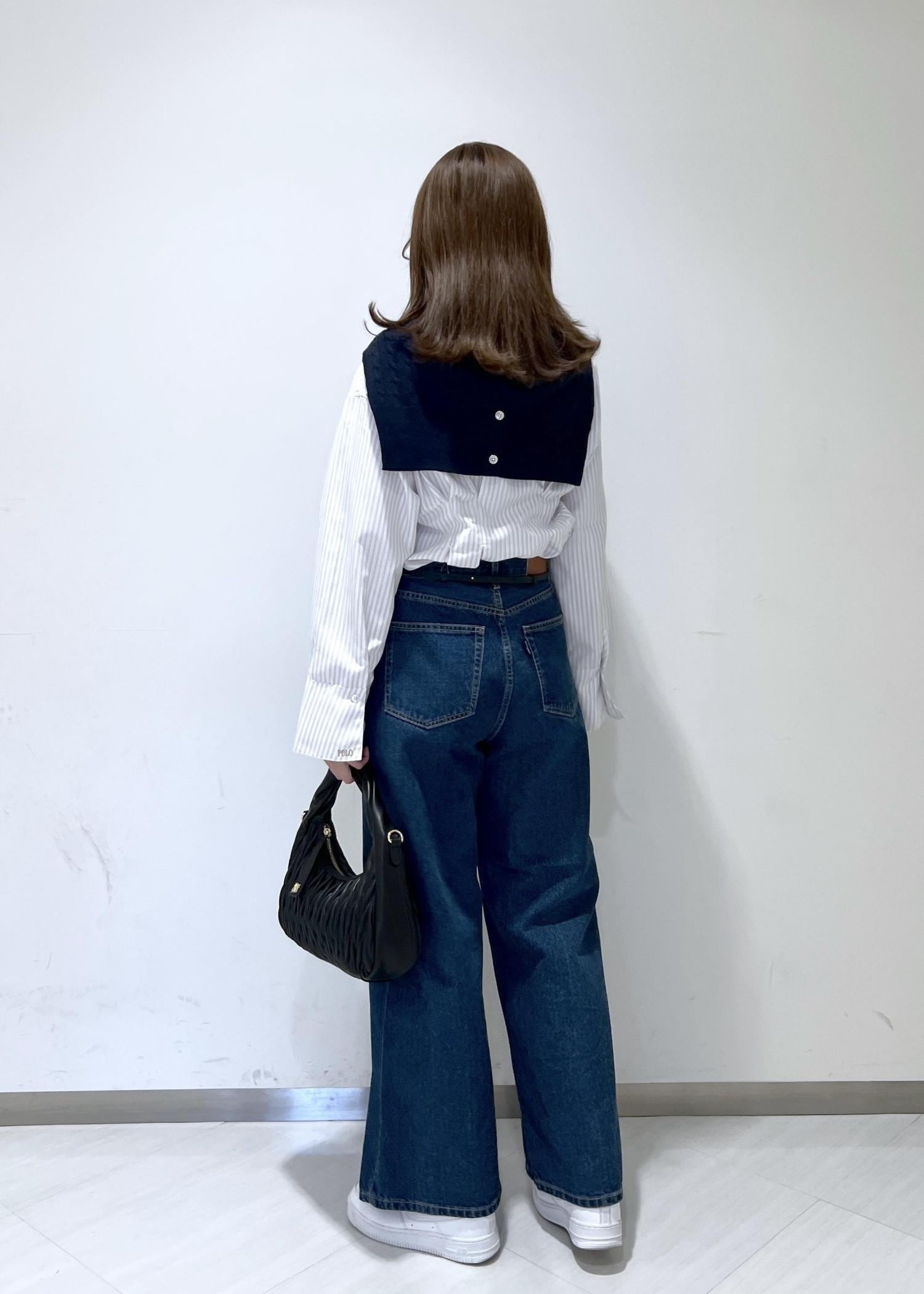 VIS【POLO BCS】VIS別注クロスベルトストレートワイドデニムブルー / M¥9,900レビュー身長164cmでぺたんこ靴で合わせましたが、床につかない丈感でした◎自身の太もも周りがあるので少しだけ余裕のあるサイズ感になりました。