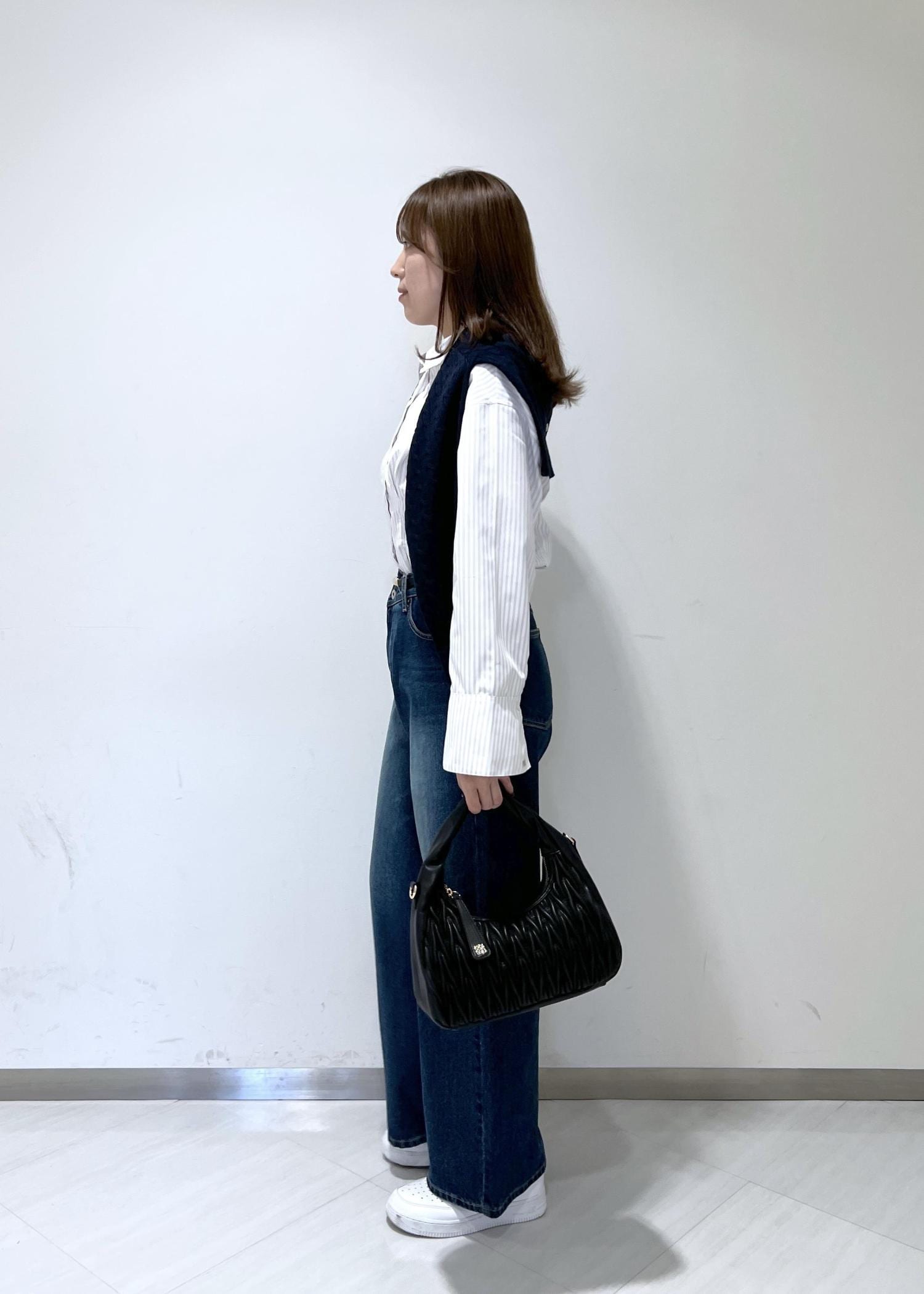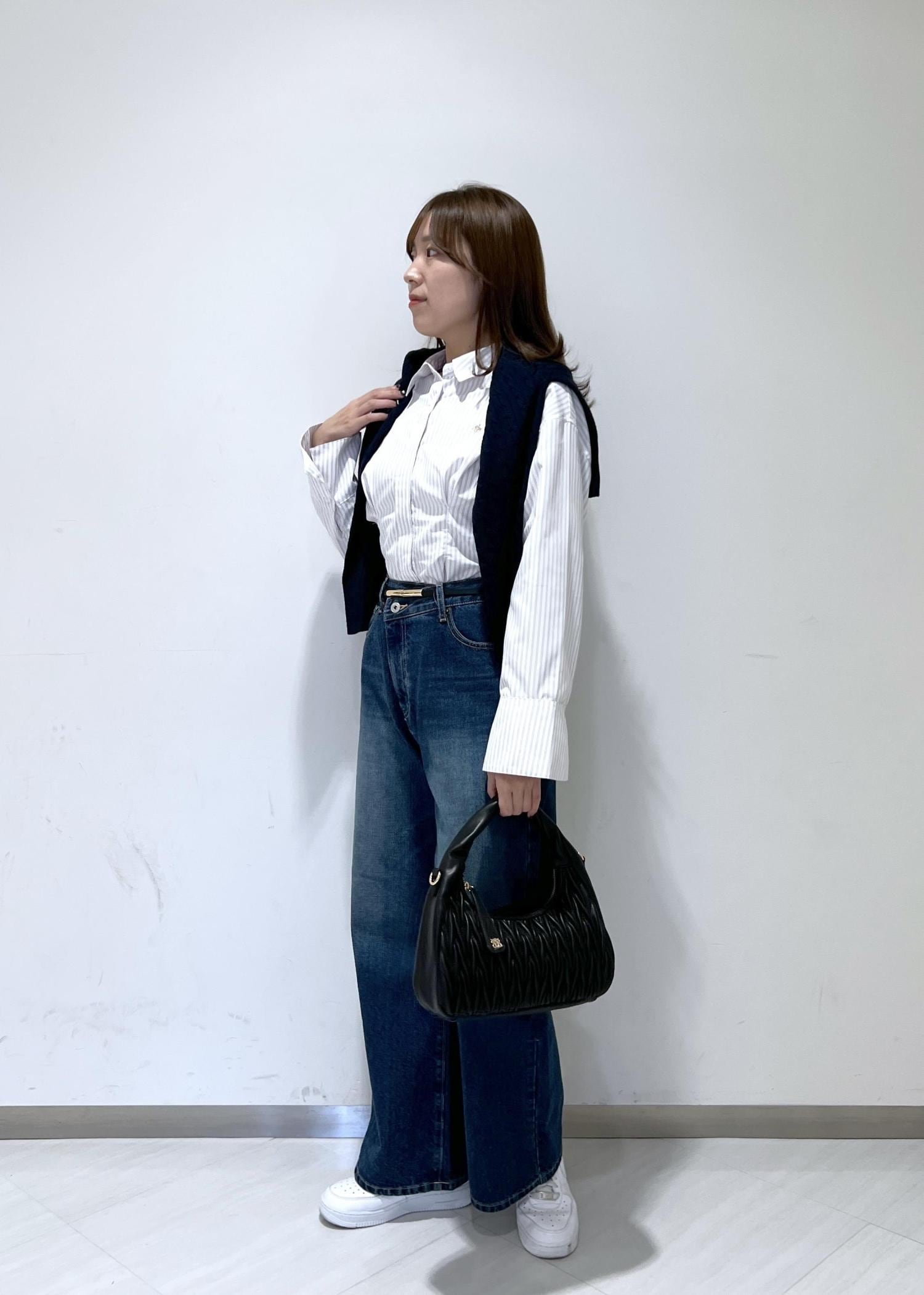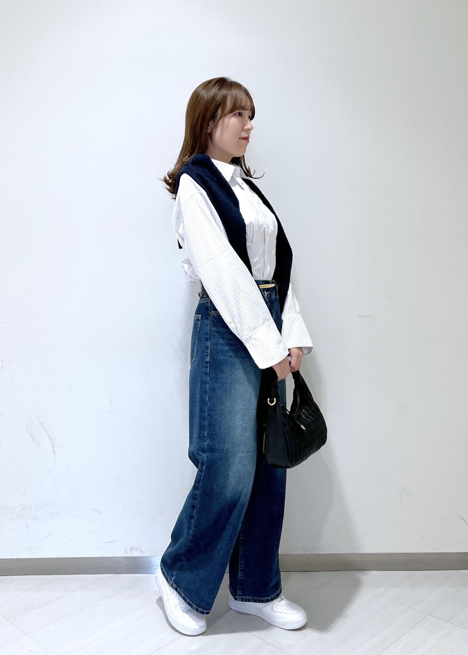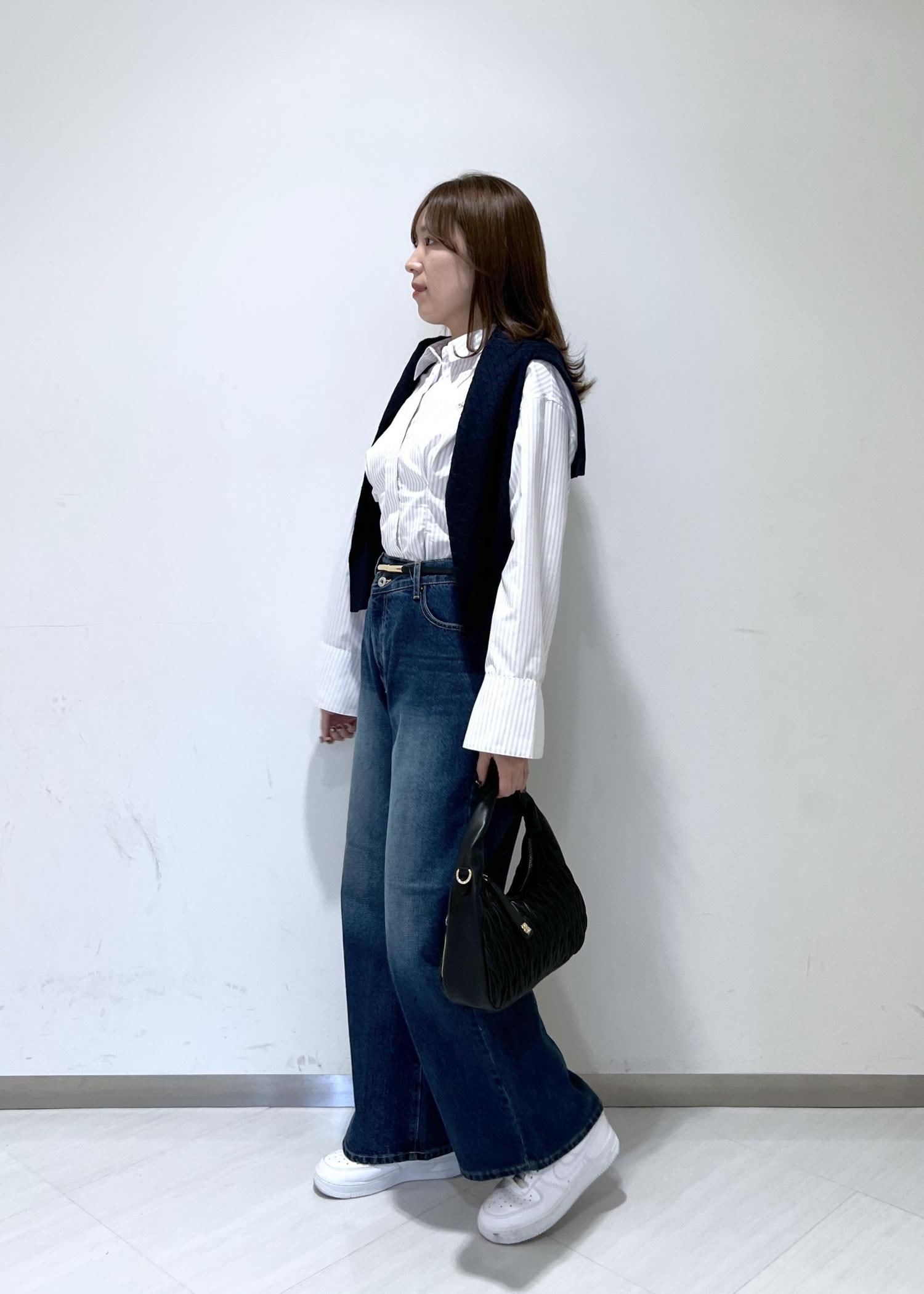 VIS【POLO BCS】VIS別注クロスベルトストレートワイドデニムブルー / M¥9,900レビュー身長164cmでぺたんこ靴で合わせましたが、床につかない丈感でした◎自身の太もも周りがあるので少しだけ余裕のあるサイズ感になりました。