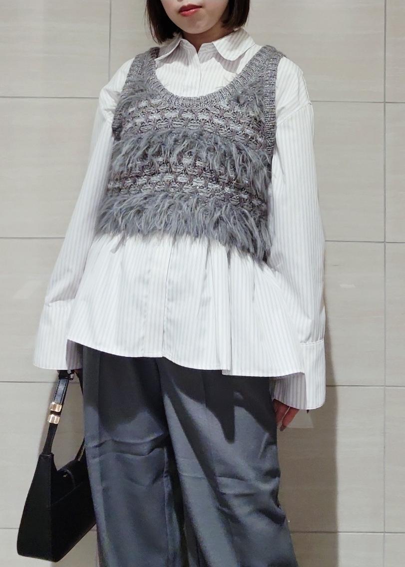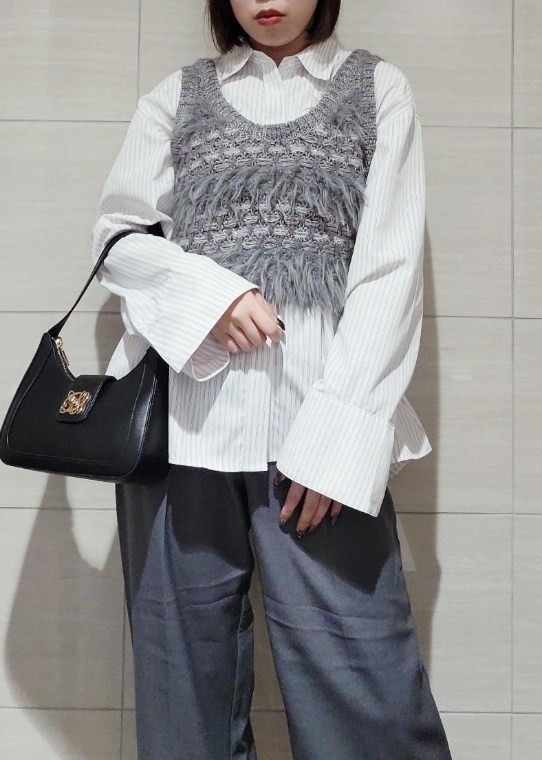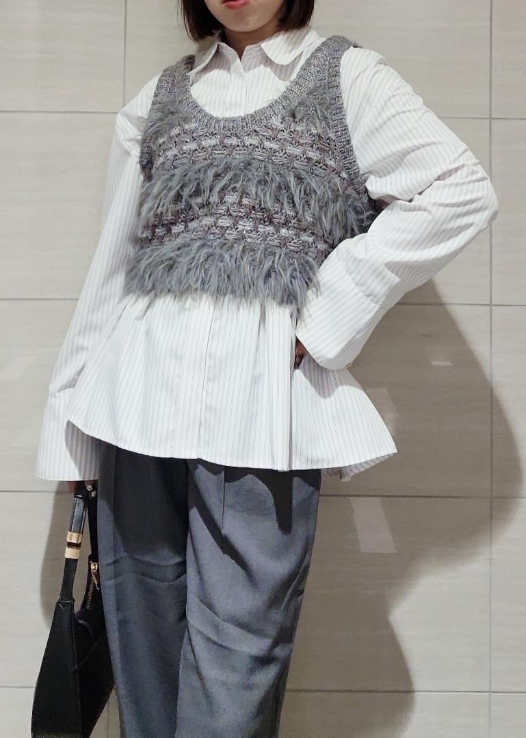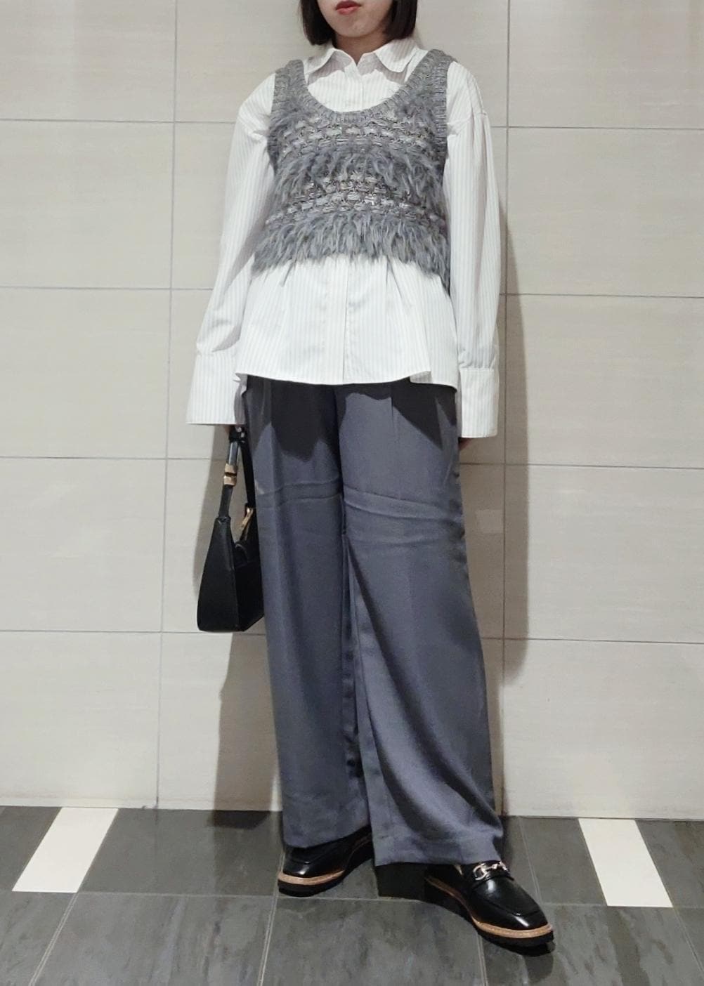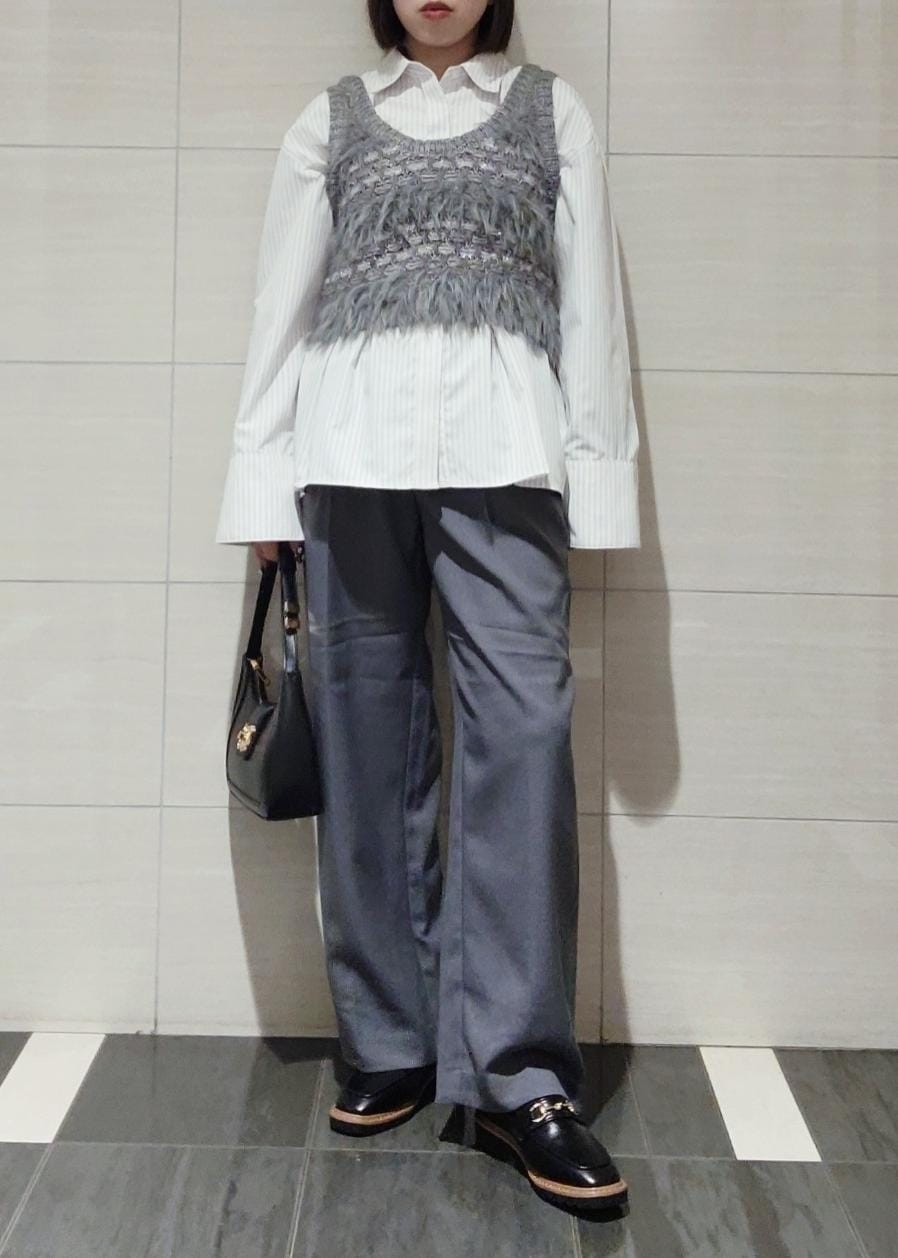 VISフェザーツイードニットビスチェ/2WAYグレー / F¥5,489レビューチクチク感のないニット素材で、ツィードデザインなのがレイヤードアイテムとしてしっかりと存在感が出ます!