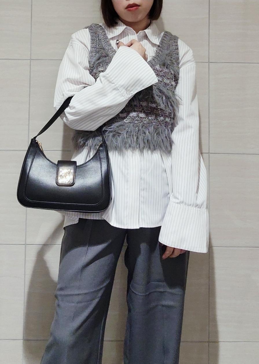 VIS【180℃美人見え】ハンドルリボンワンショルダーバッグブラック / F¥5,929レビューファスナータイプなので中身が見えず、ひねり金具なので開閉もしやすいです。長財布が収まるほどのサイズ感で、大きすぎず軽量で使いやすいです。