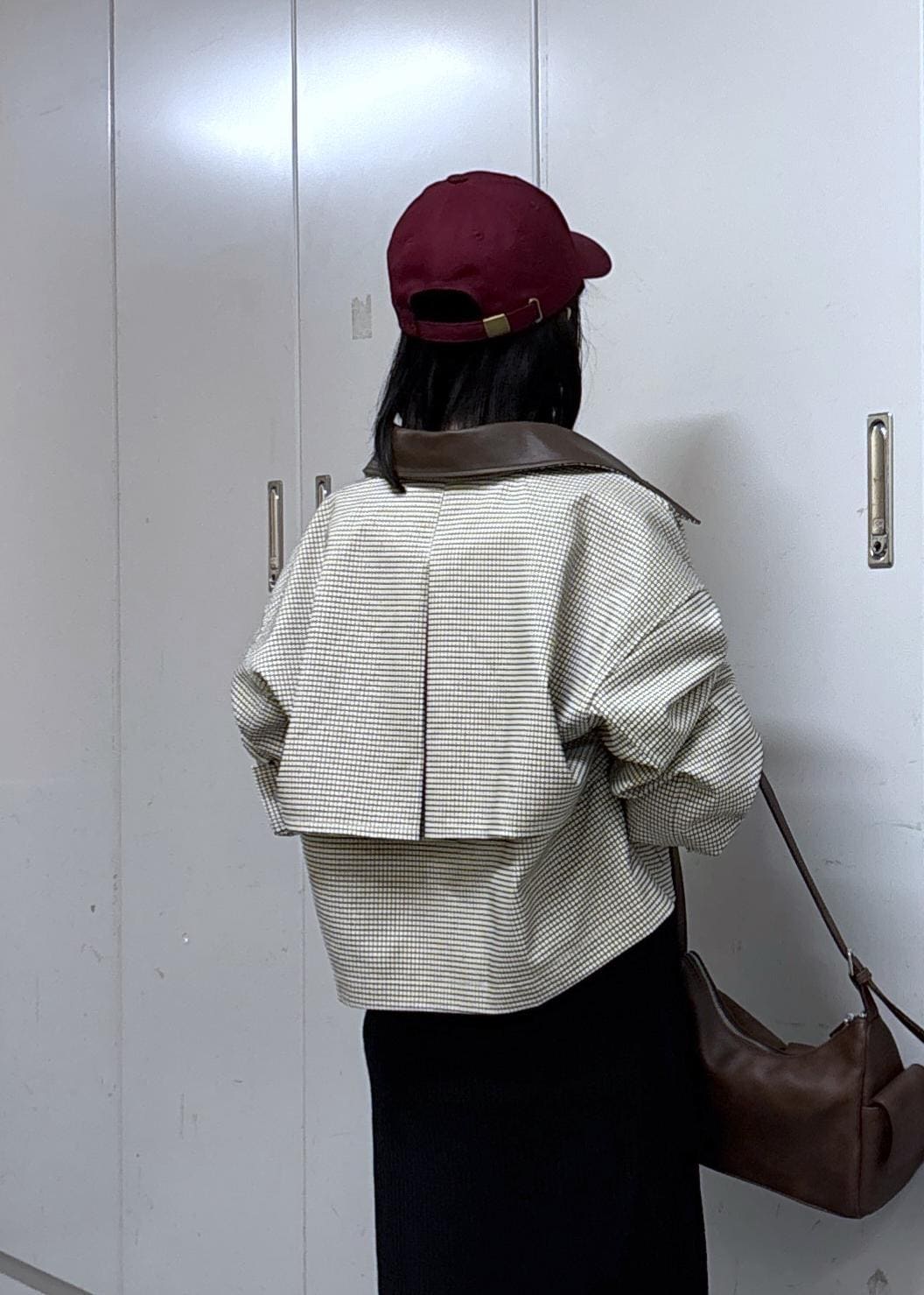 細めのチェックで、襟は合皮なので子供っぽくならない◎
