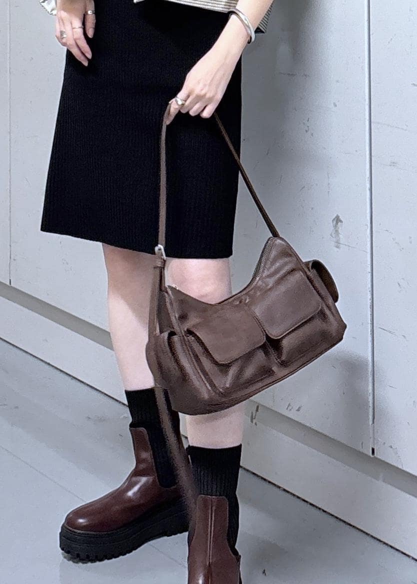 VIS【2WAY】ビンテージ合皮クアトロポケットショルダーバッグブラウン系 / F¥6,919レビューポケットが表面に4個付いていて嬉しい!✨