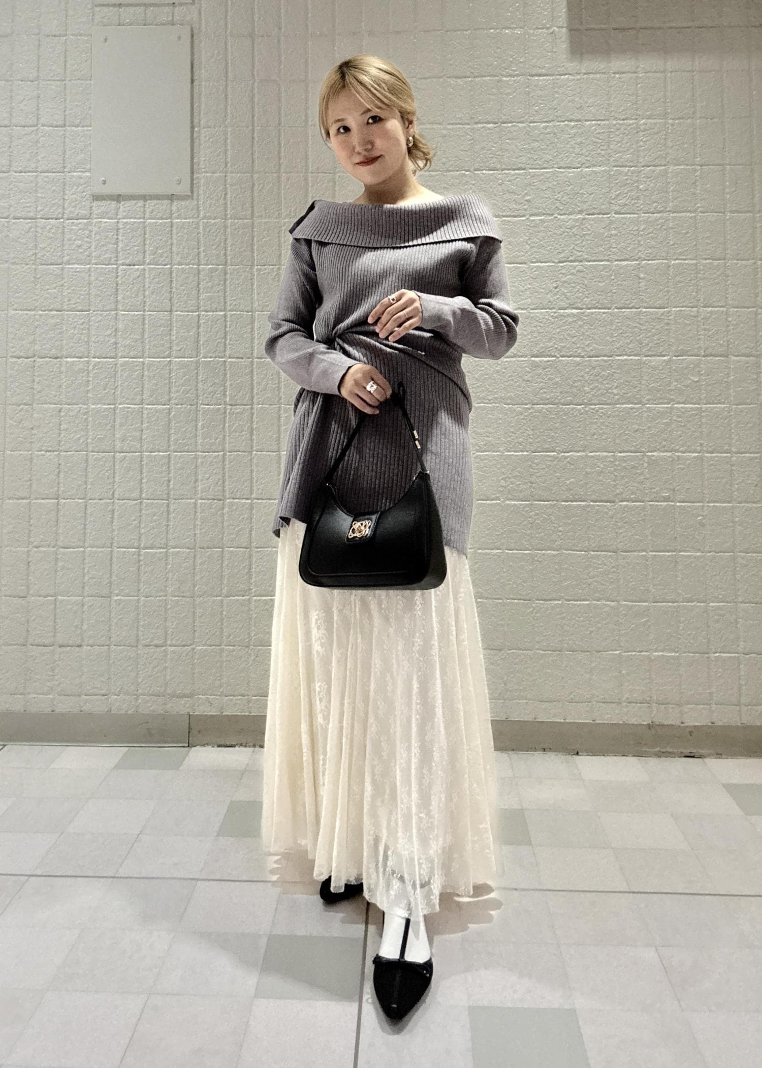 オフショル風の程よい肌見せが女性らしい印象になります。 -