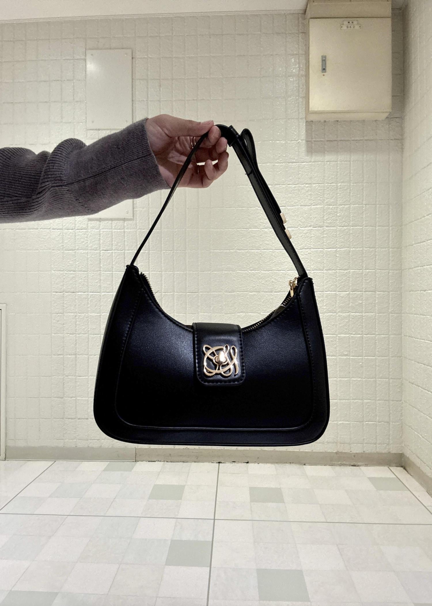 VIS【180℃美人見え】ハンドルリボンワンショルダーバッグブラック / F¥5,929レビューコンパクトですがまちがわりとあるので横長の財布も入ります。