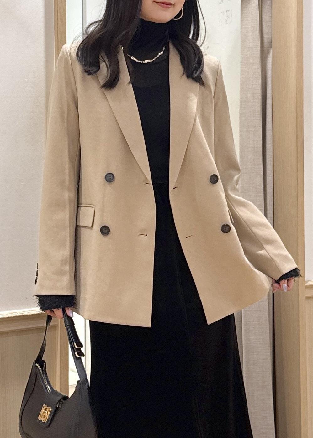 VIS【美easy】ウーリッシュダブルブレストテーラードジャケット【セットアップ対応/洗える】ベージュ / M¥8,899レビュー164cm、Mサイズ着用でヒップの隠れる丈感。