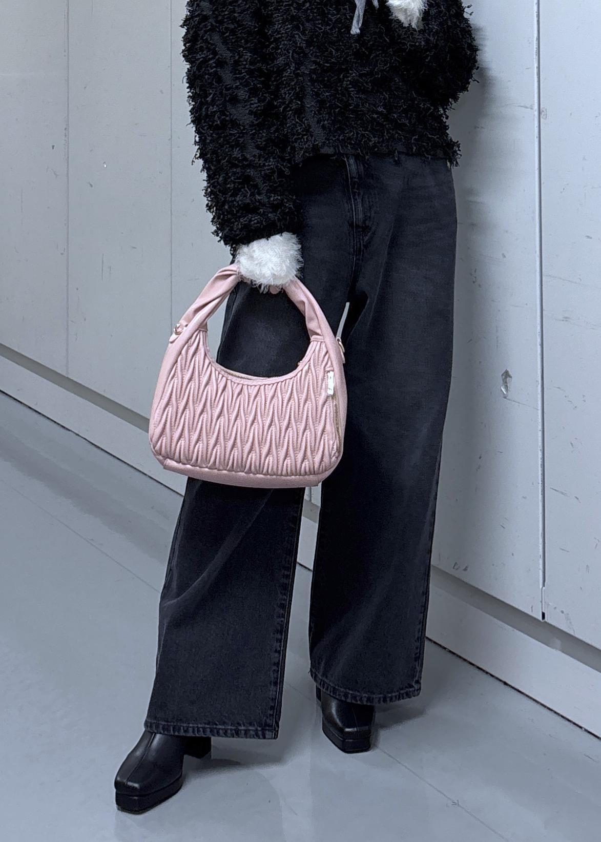 VIS【2WAY】ねじりハンドルキルティングバッグピンク系 / F¥7,909レビュー背面にポケットがあり。