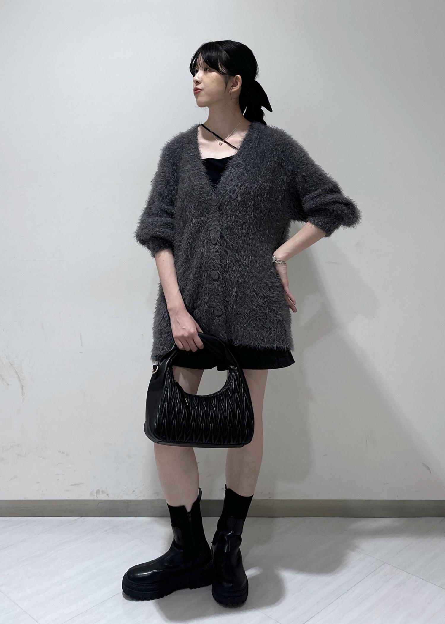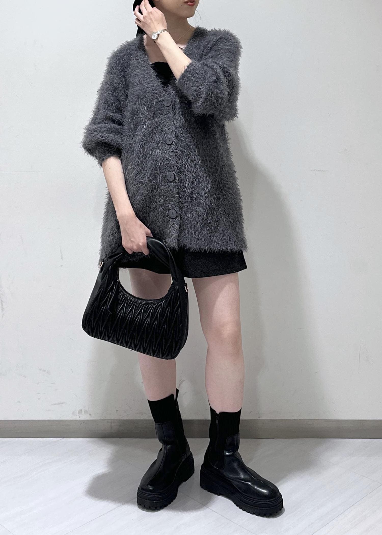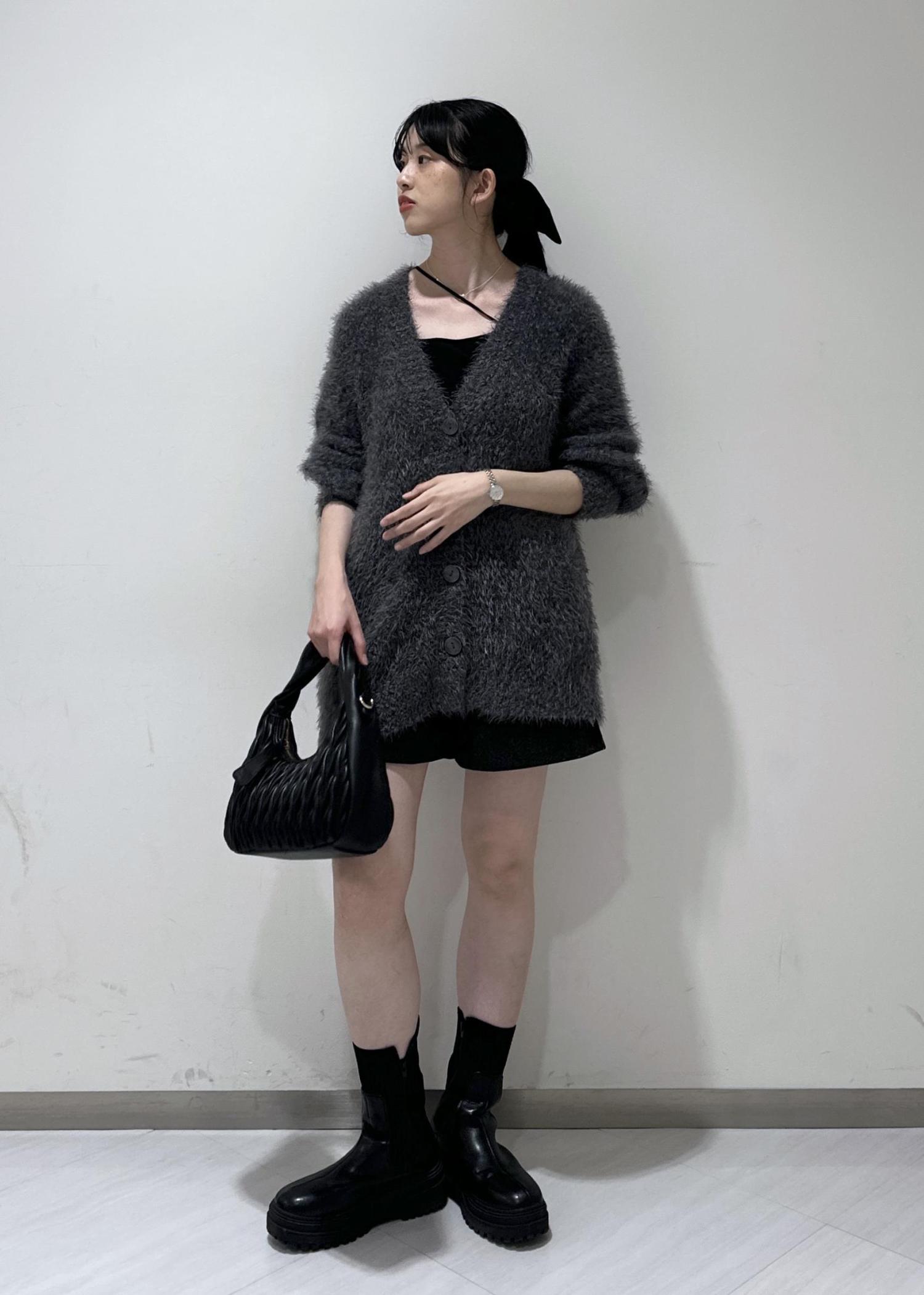 生地は厚手ですが着心地軽いので、夏日でもキャミ合わせで着られます!