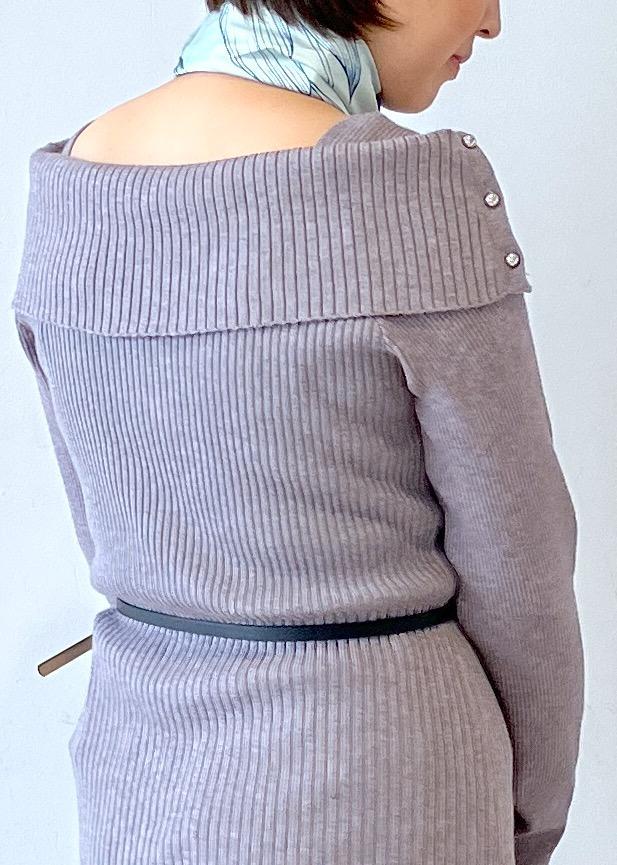 VISアシメオフショルリブニット美シルエットワンピース/着丈が選べるグレー / FS¥8,899レビューオフショル風が可愛いニットワンピース!肩にマチがあるので肩から落ちず安心デザイン!ボタンはメタルのきらっとしたボタンでアクセントに!また開閉可能なので開けて抜け感を出してもおすすめです!
