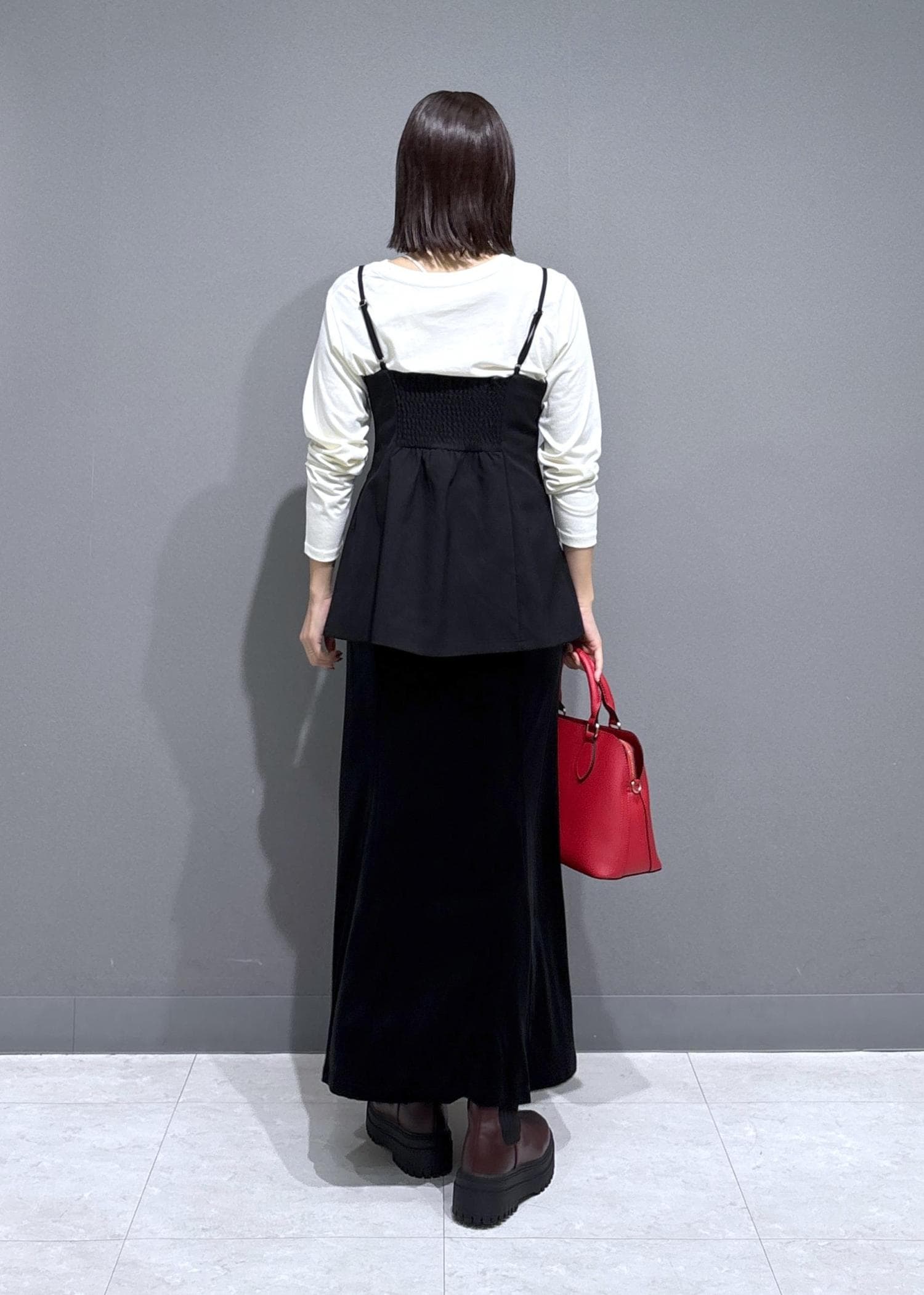 VIS【美easy】ウーリッシュチュニック丈ビスチェ【セットアップ対応/洗える】ブラック / F¥6,589レビューウエストが絞られてるのでスタイルアップ効果◎
