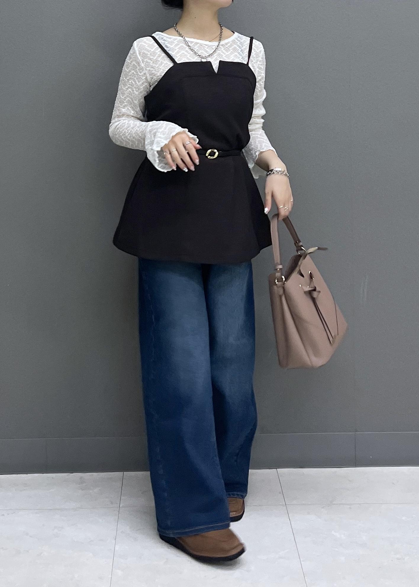 ウエストマークしなくても綺麗なシルエットでしたが、お尻が隠れるくらいだったので、のぺー。っと見えないようにウエストにメリハリをつける為にベルトをつけました!