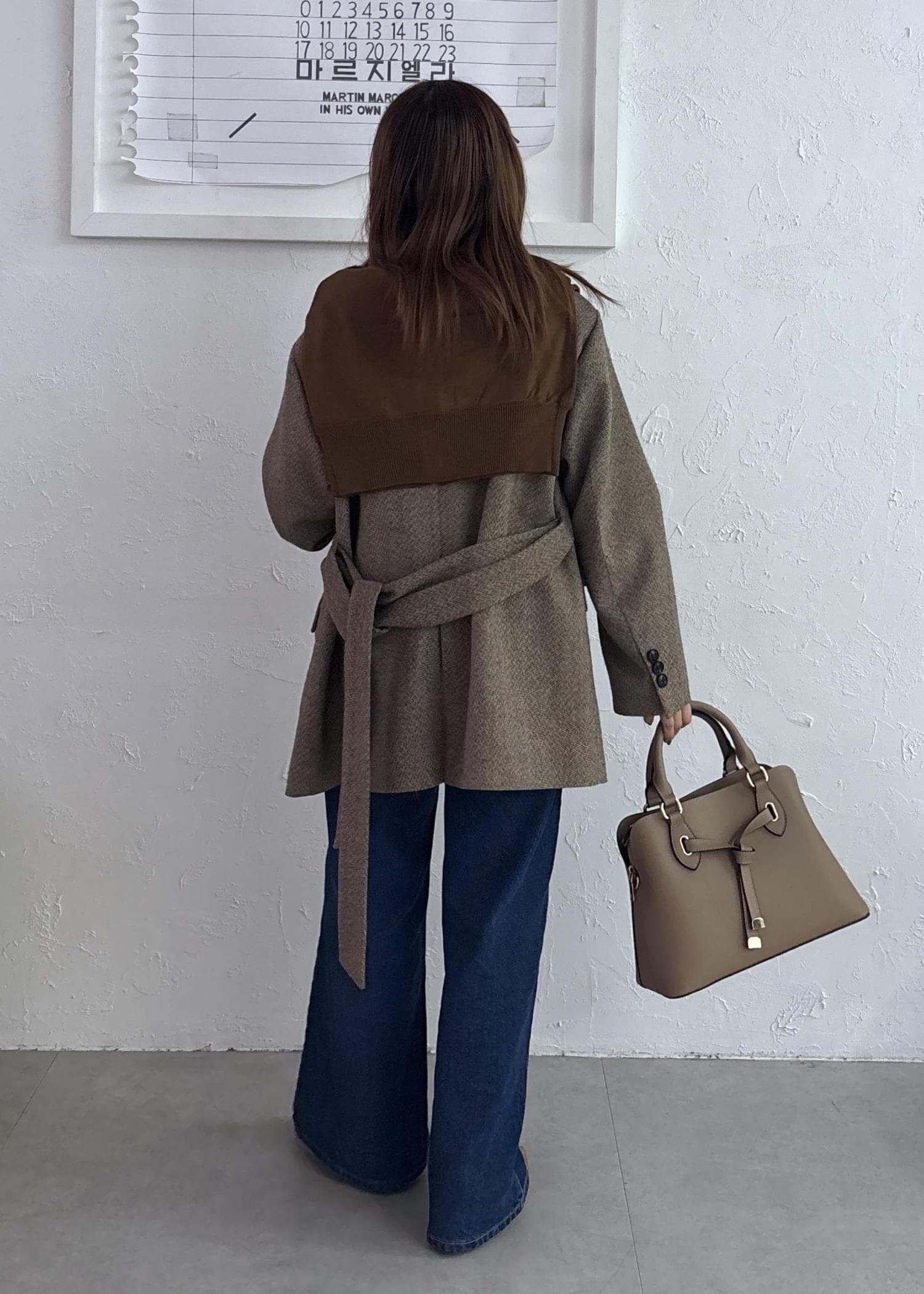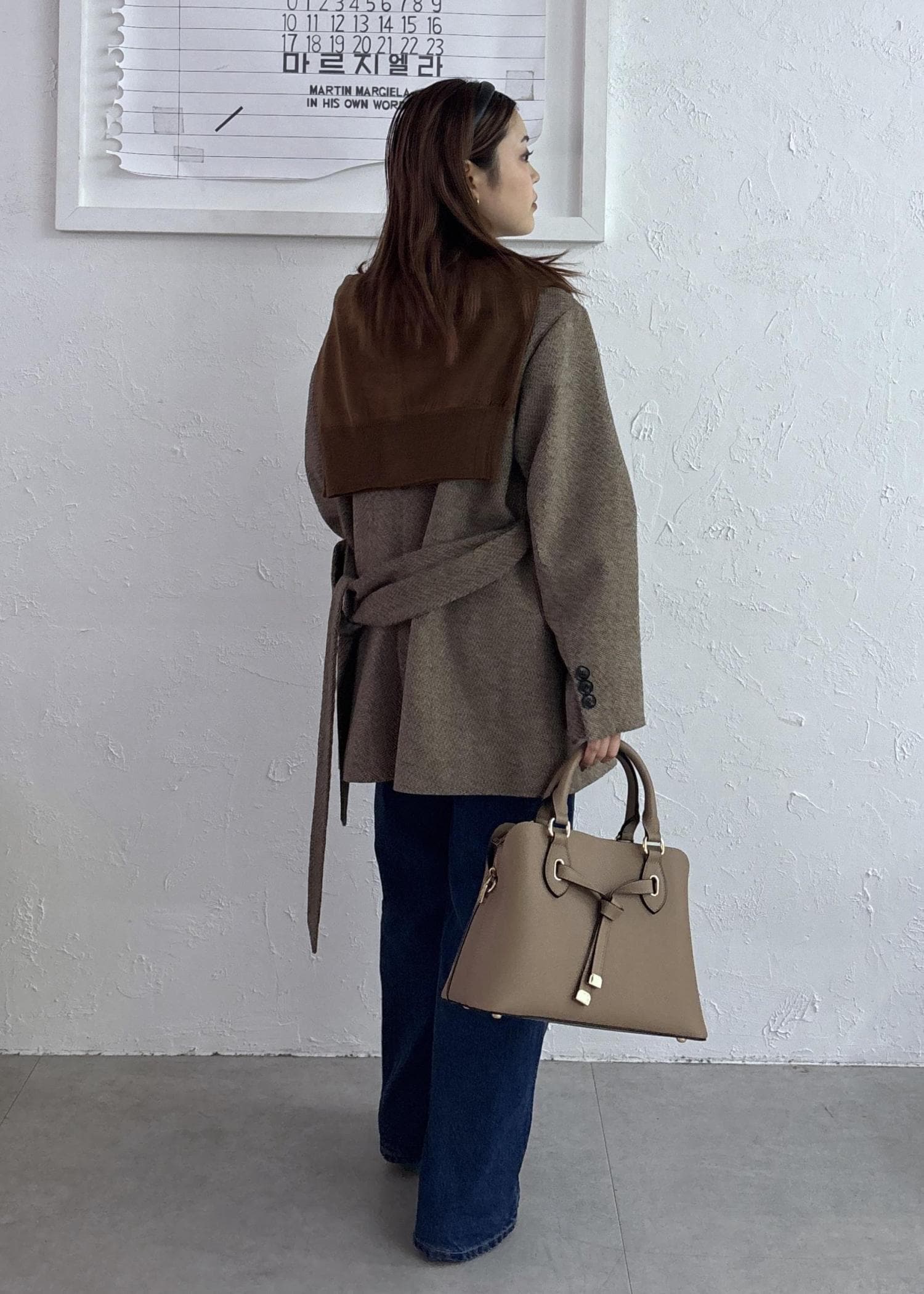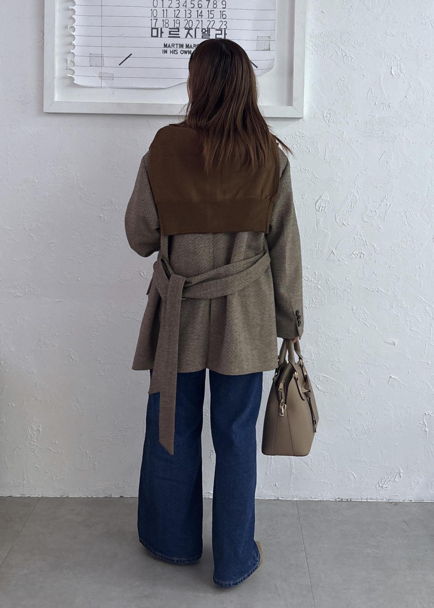 VISヘリンボーンツイードベルテッドジャケット/セットアップ対応ベージュ系 / F¥9,999レビュー身長150センチお尻まるまる隠れる丈感。膝上10センチ