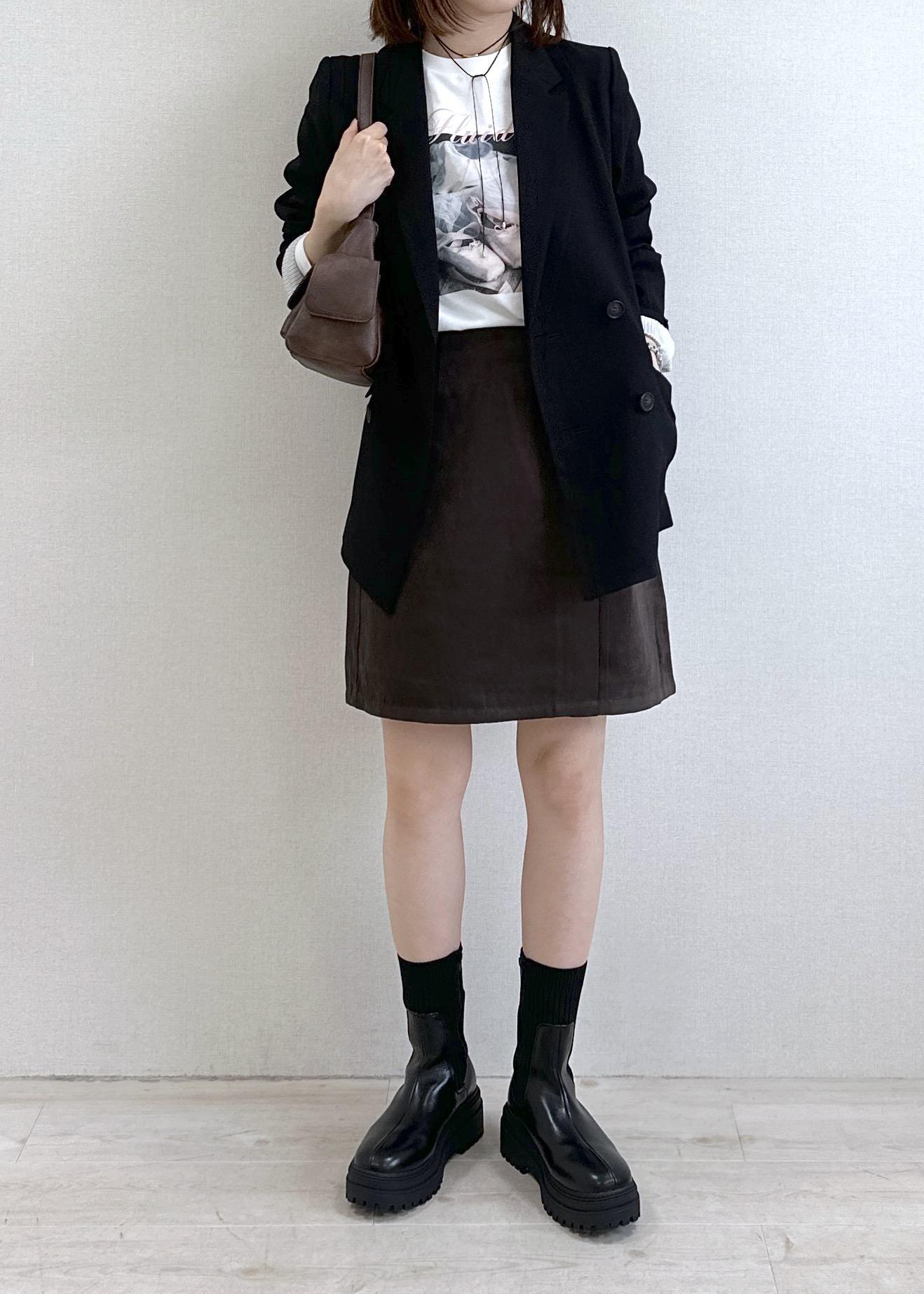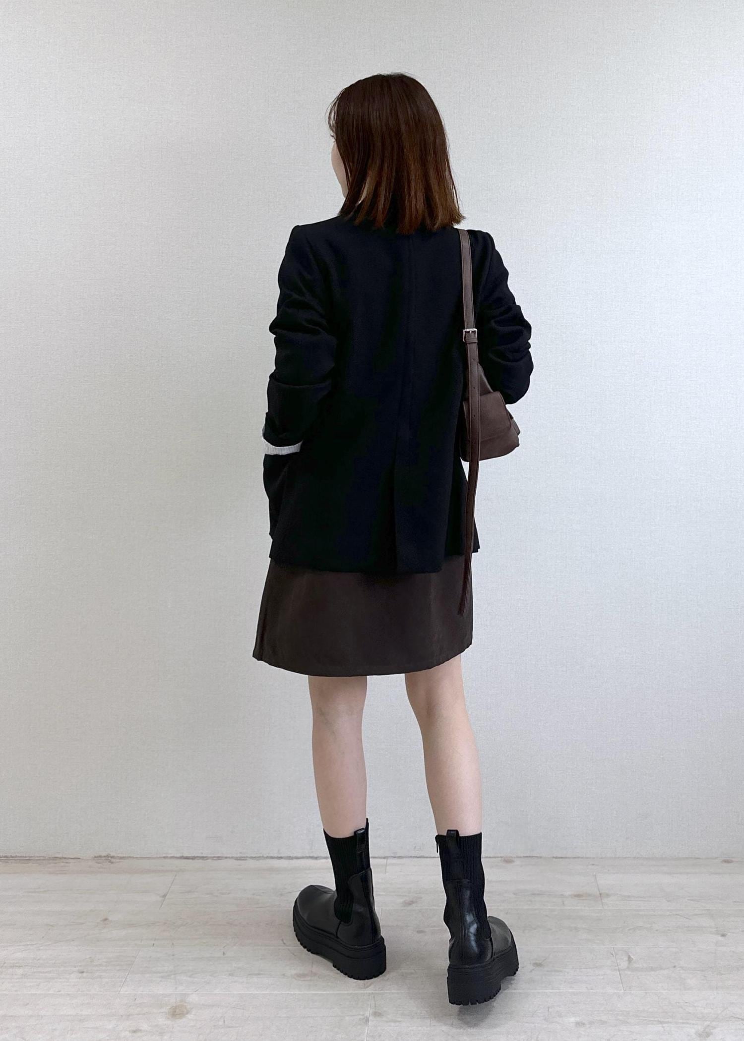 厚底なのとニット切り替えのデザインなので、脚長効果のあるブーツ。クッション性もありとっても履きやすいです。
