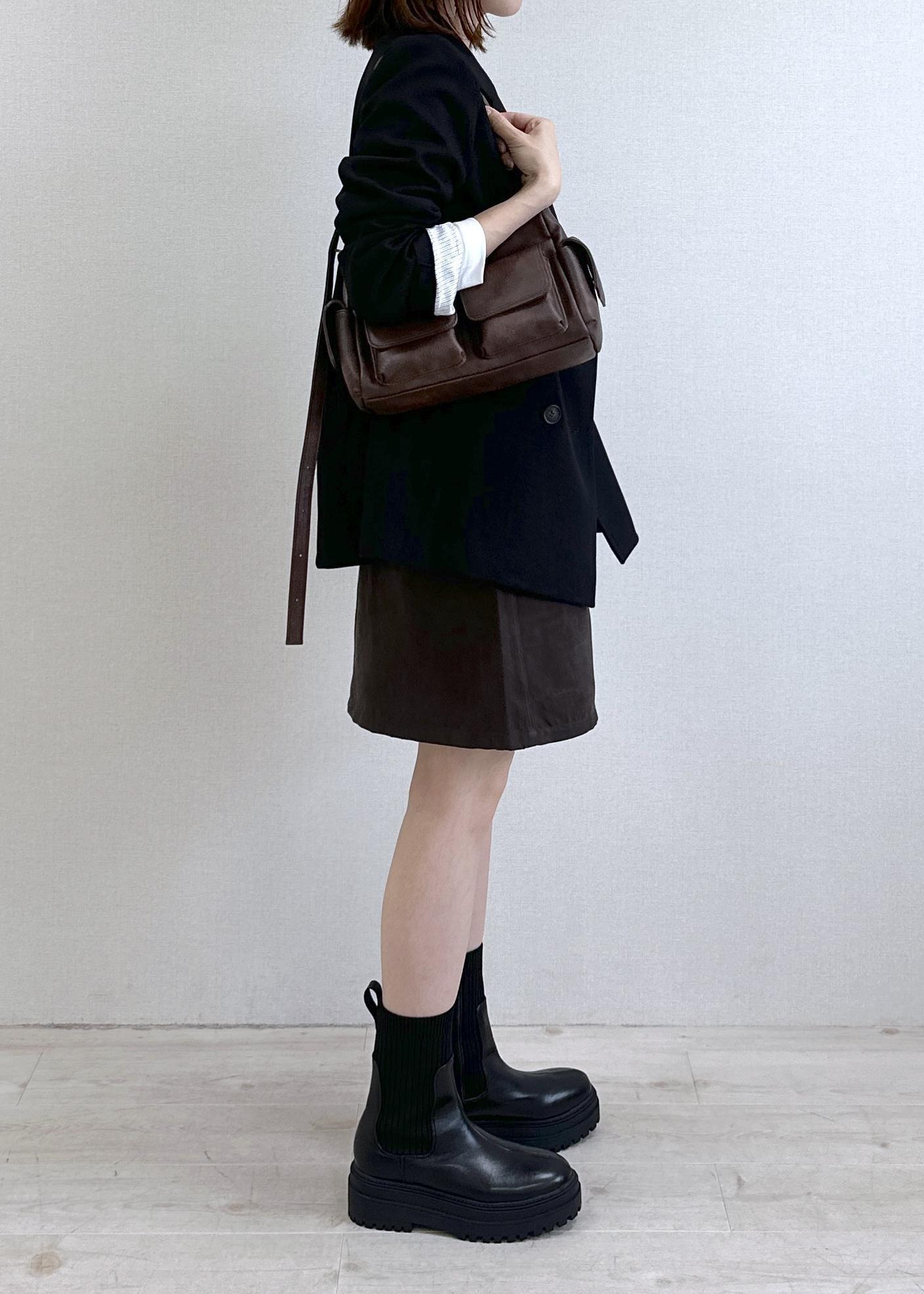 【2WAY】ビンテージ合皮クアトロポケットショルダーバッグ