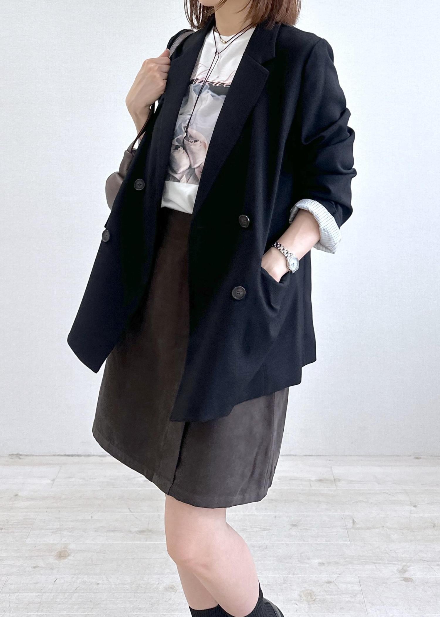 ヒップが隠れる長さで、程よくゆとりもあるのでON/OFF使い勝手の良いジャケットです。