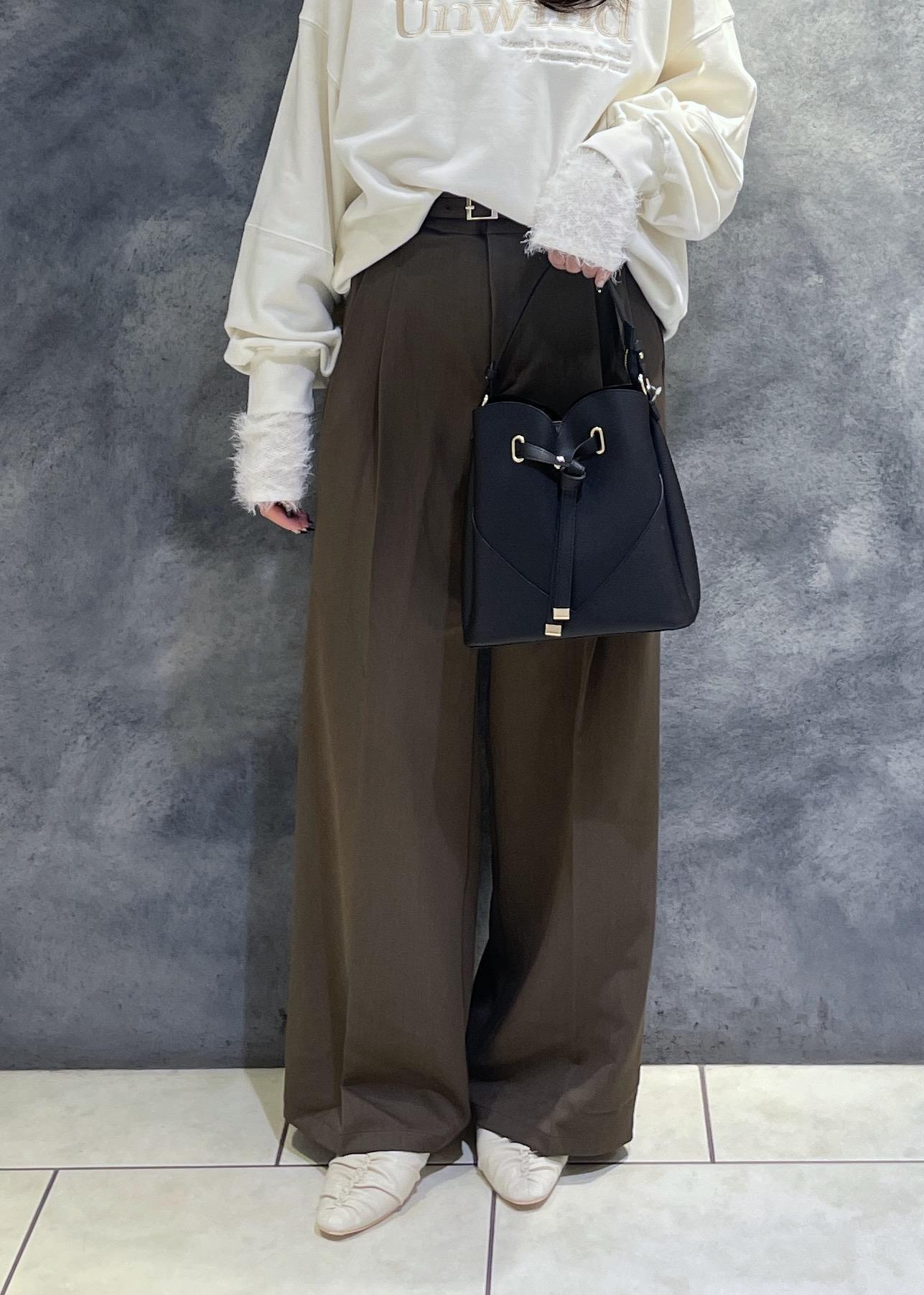 VISベルトディテールタックワイドパンツ/イージーケアブラウン / M¥6,589レビュー160cmでMサイズ着用。くるぶしが隠れる丈感です。