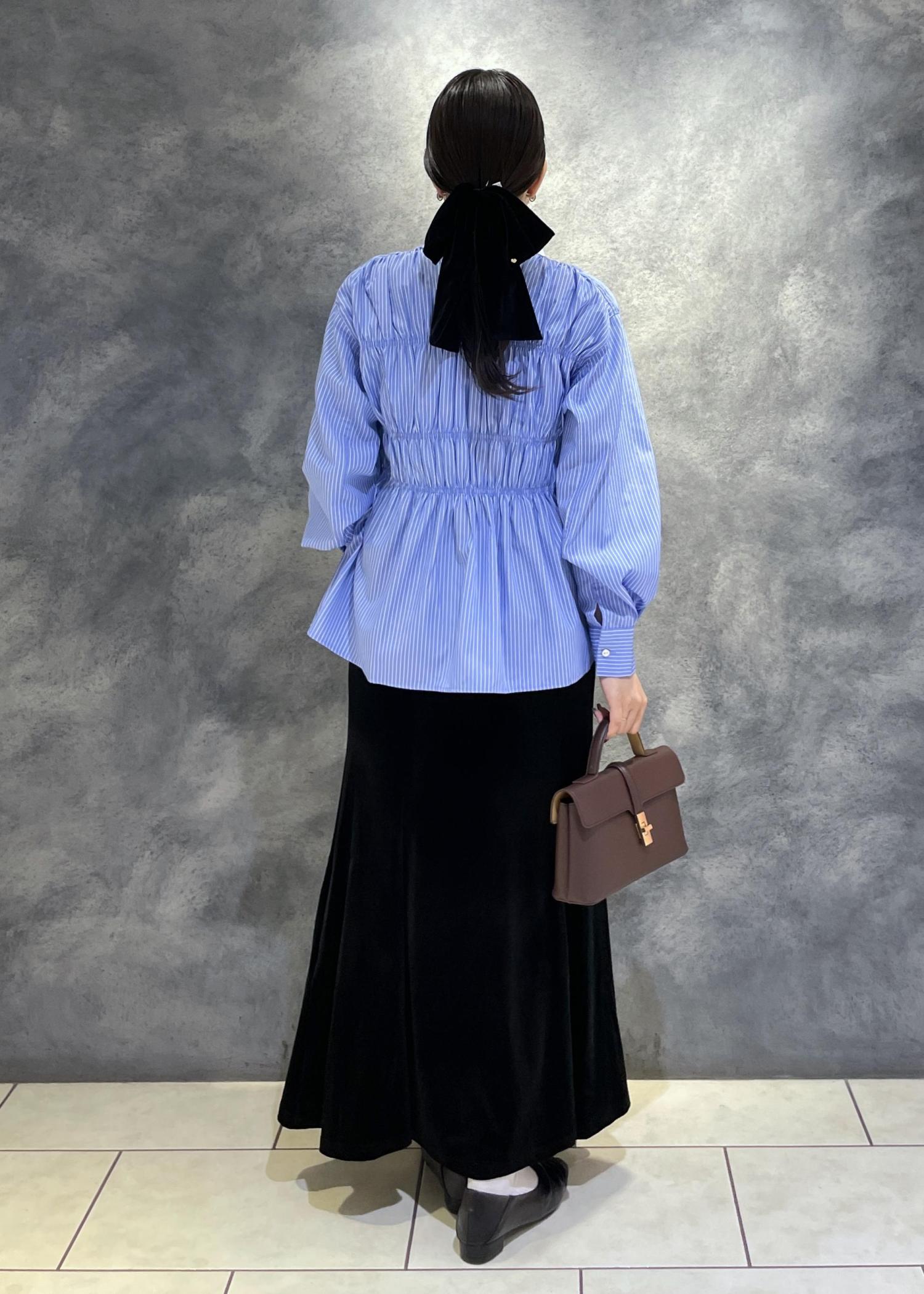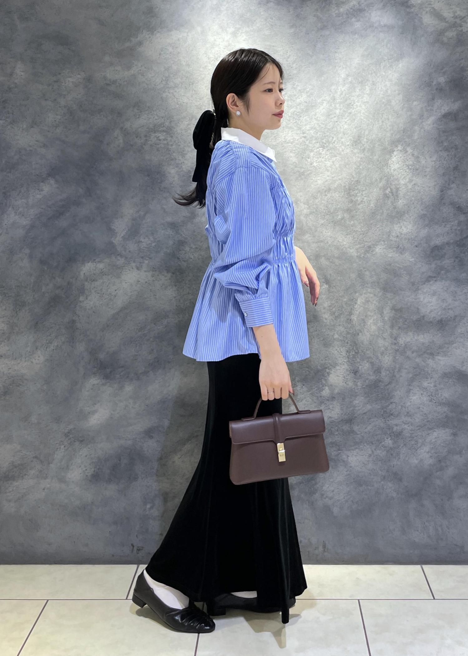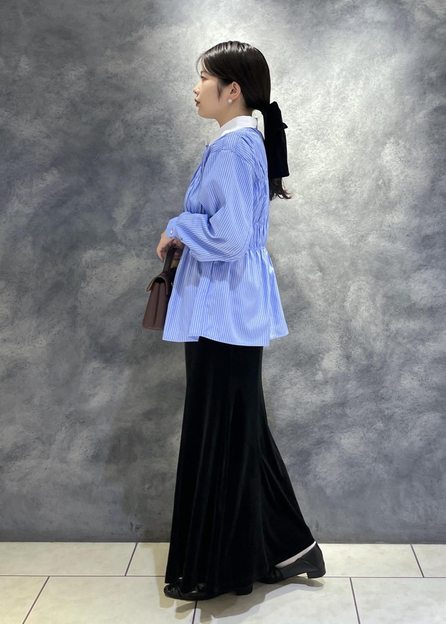 シャーリングが柔らかく圧迫感なく着用いただけます。前開きですとカジュアルダウンするので雰囲気変えていただけます。 -