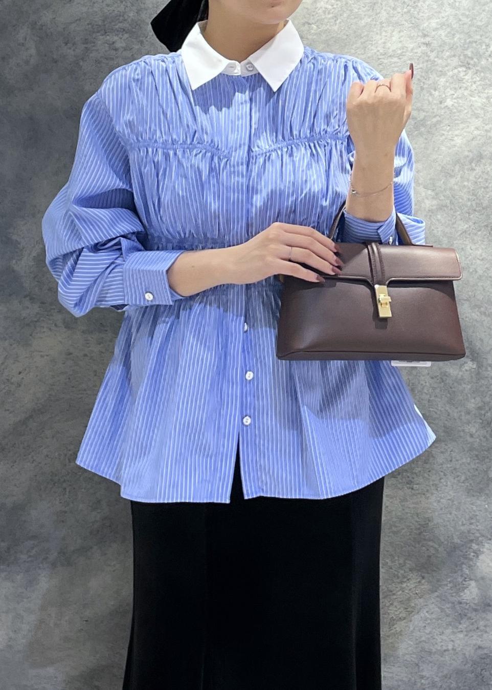 VISシャーリングデザインシャツブルー系 / F¥5,489レビュー身長160cmで腰骨が隠れる丈感。