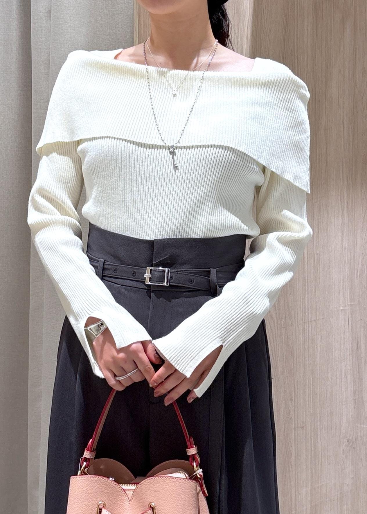 NEW!VIS【美得】オフショルダーモチモチリブニット/好評につき再入荷オフホワイト / F¥5,489レビュー細リブで伸びの良い素材なのでとても着やすいです!