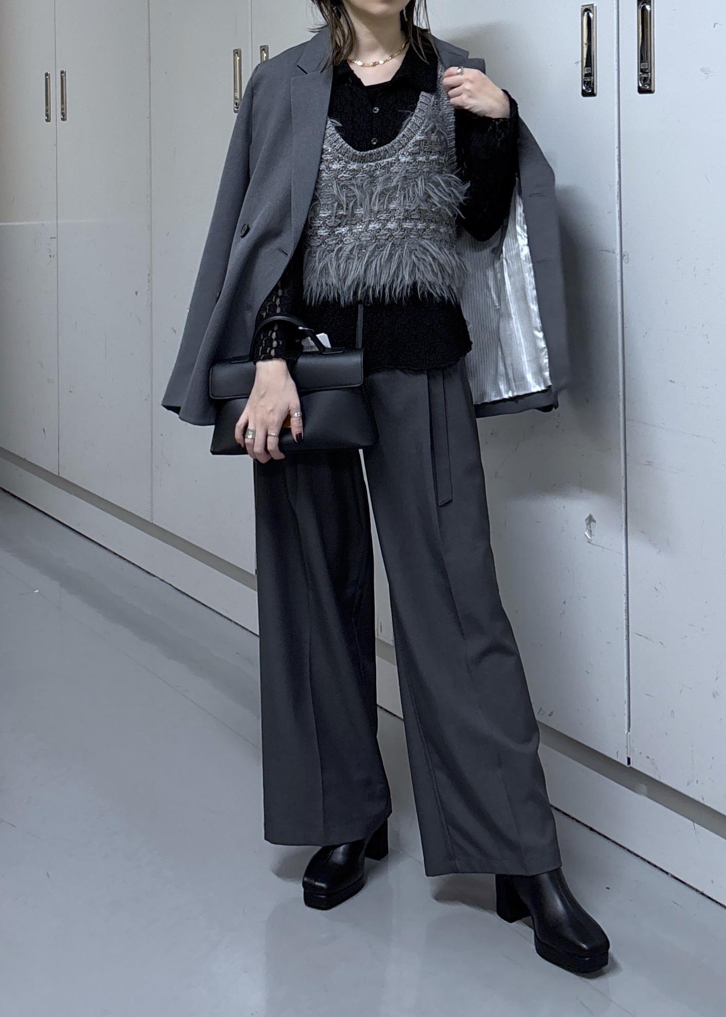 グレーとブラックで重めになりそうだったので、髪は軽くまとめてみました!