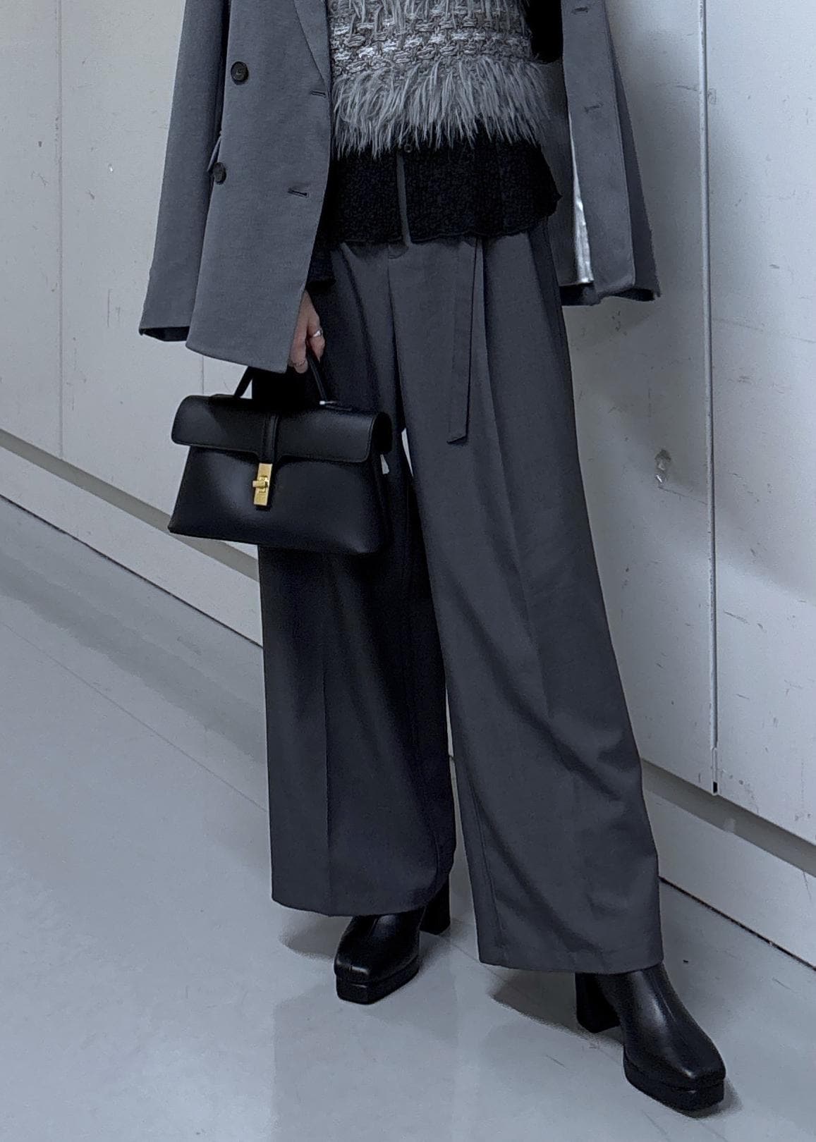 VISベルトディテールタックワイドパンツ/イージーケアチャコール / S¥6,589レビュー少しテロっとした落ち感のある素材感で、ワイドですが広すぎる印象は無いです◎