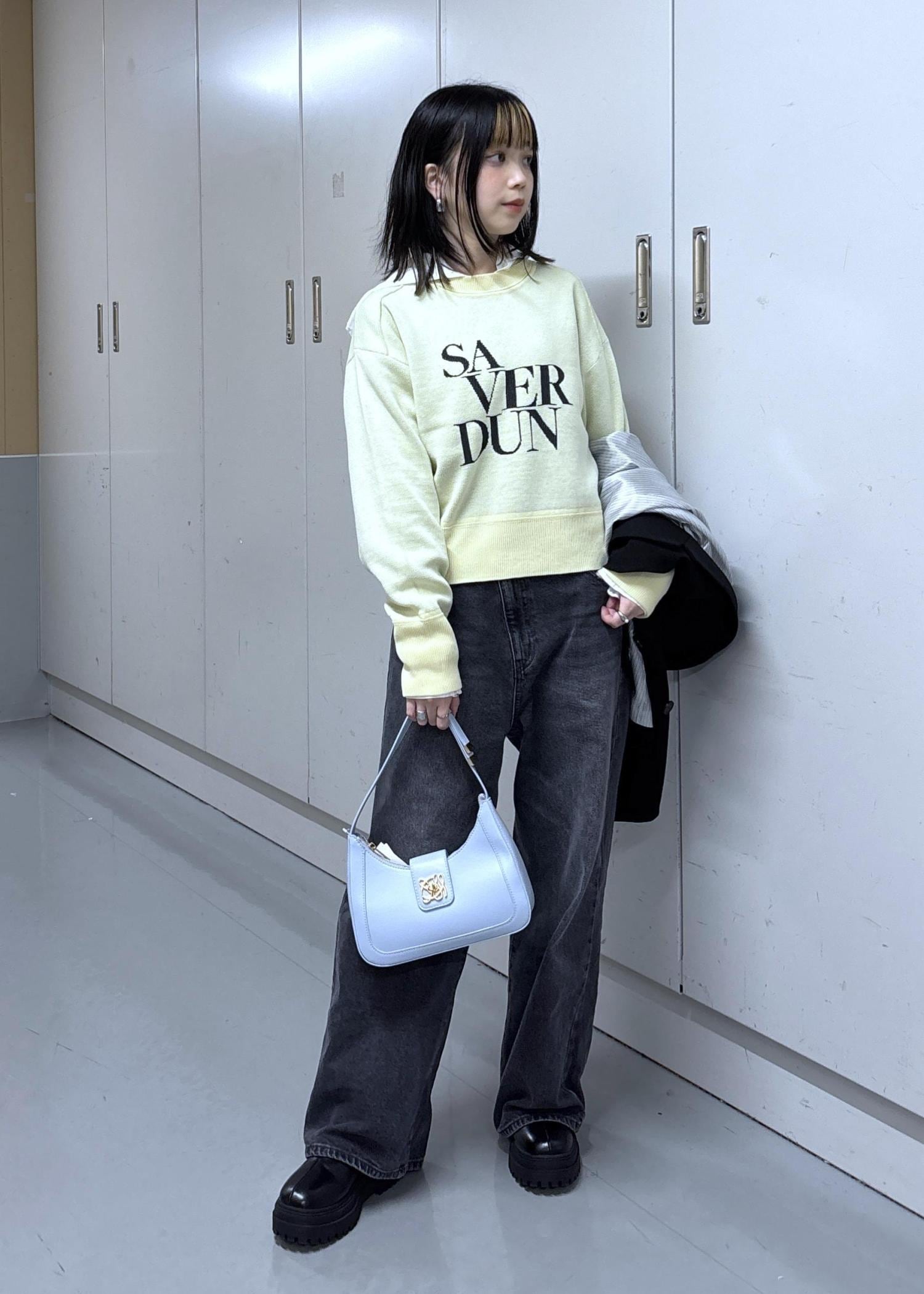 リアルバイアイテムにロゴニットをレイヤードで挟んだスタイル!