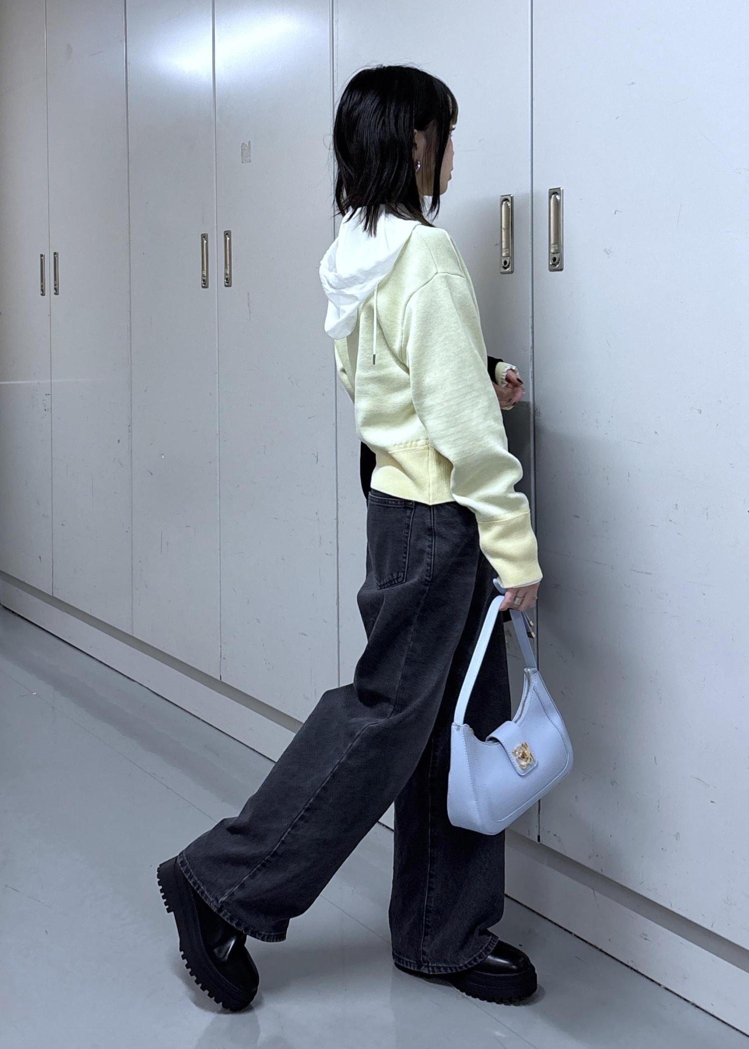 コンパクトな丈感なのでミニ丈やハイウエストボトムにも合わせやすい!
