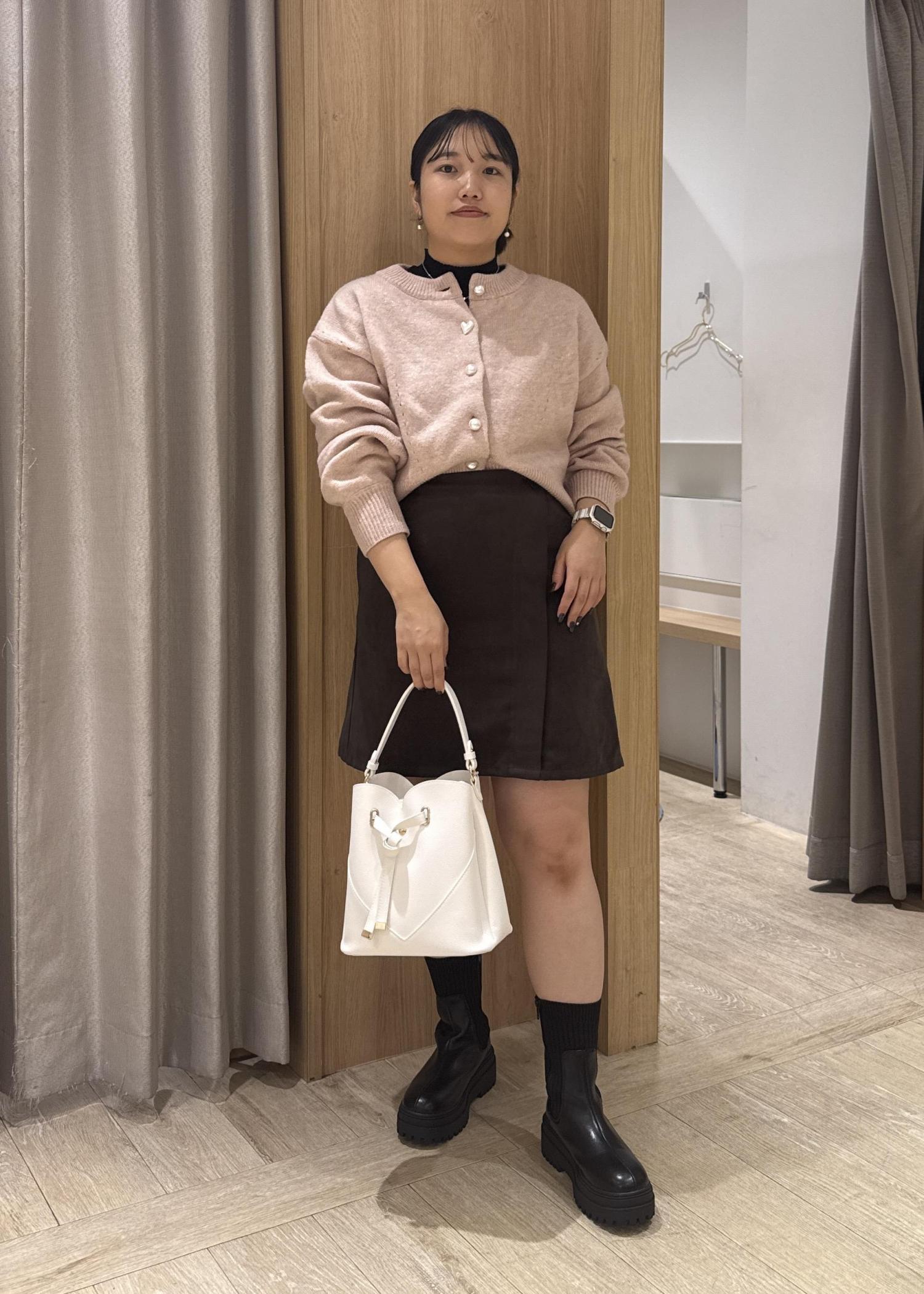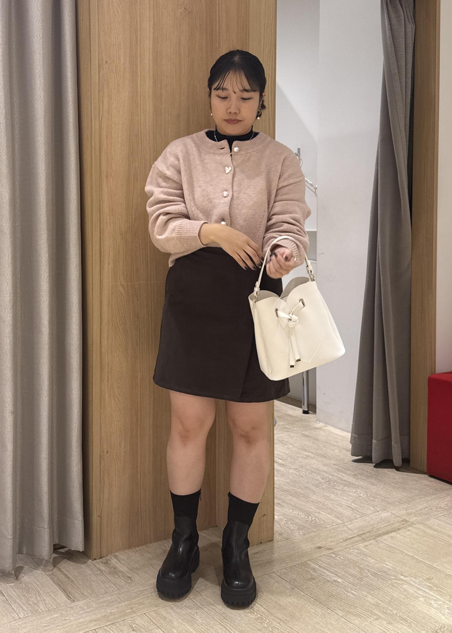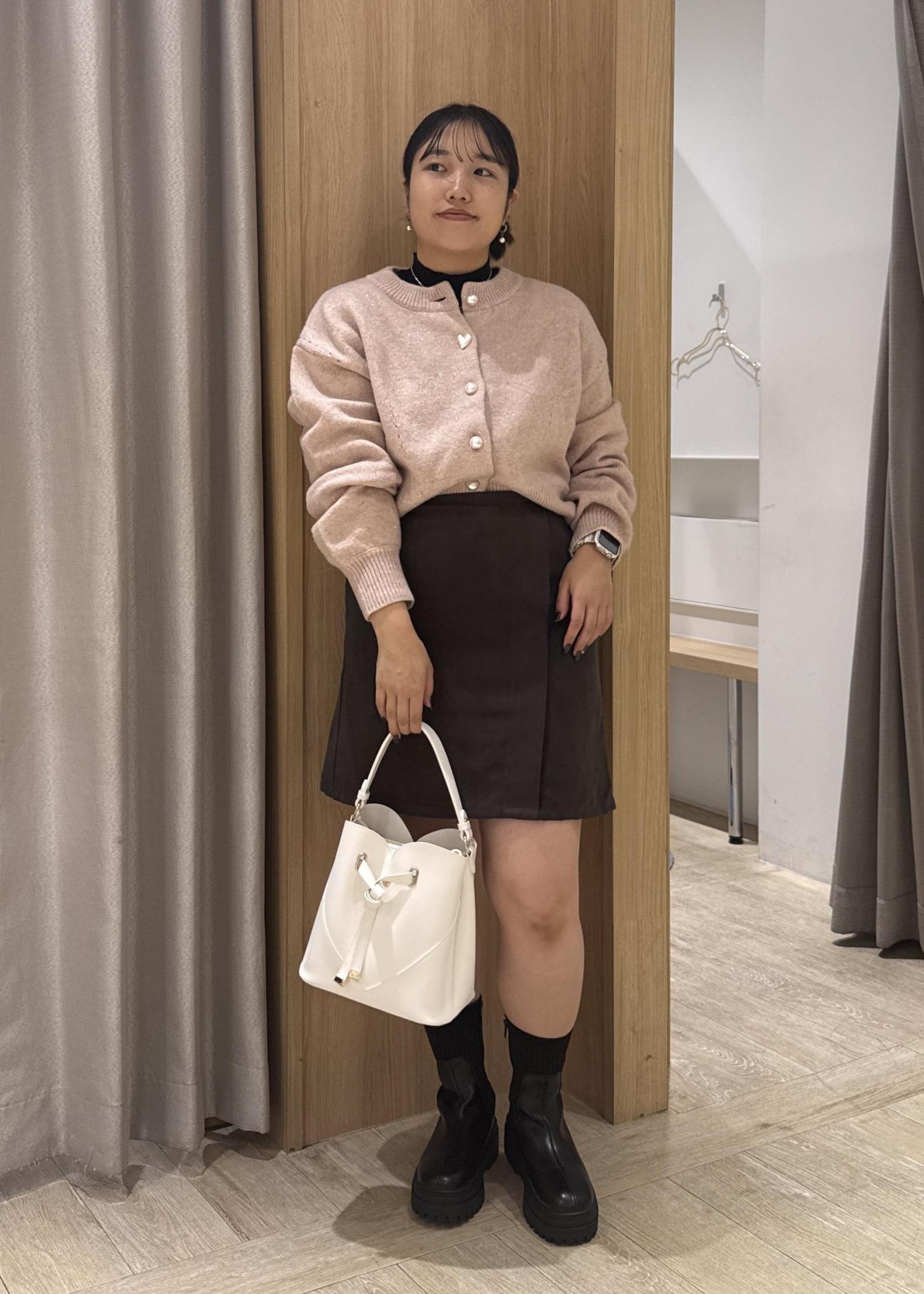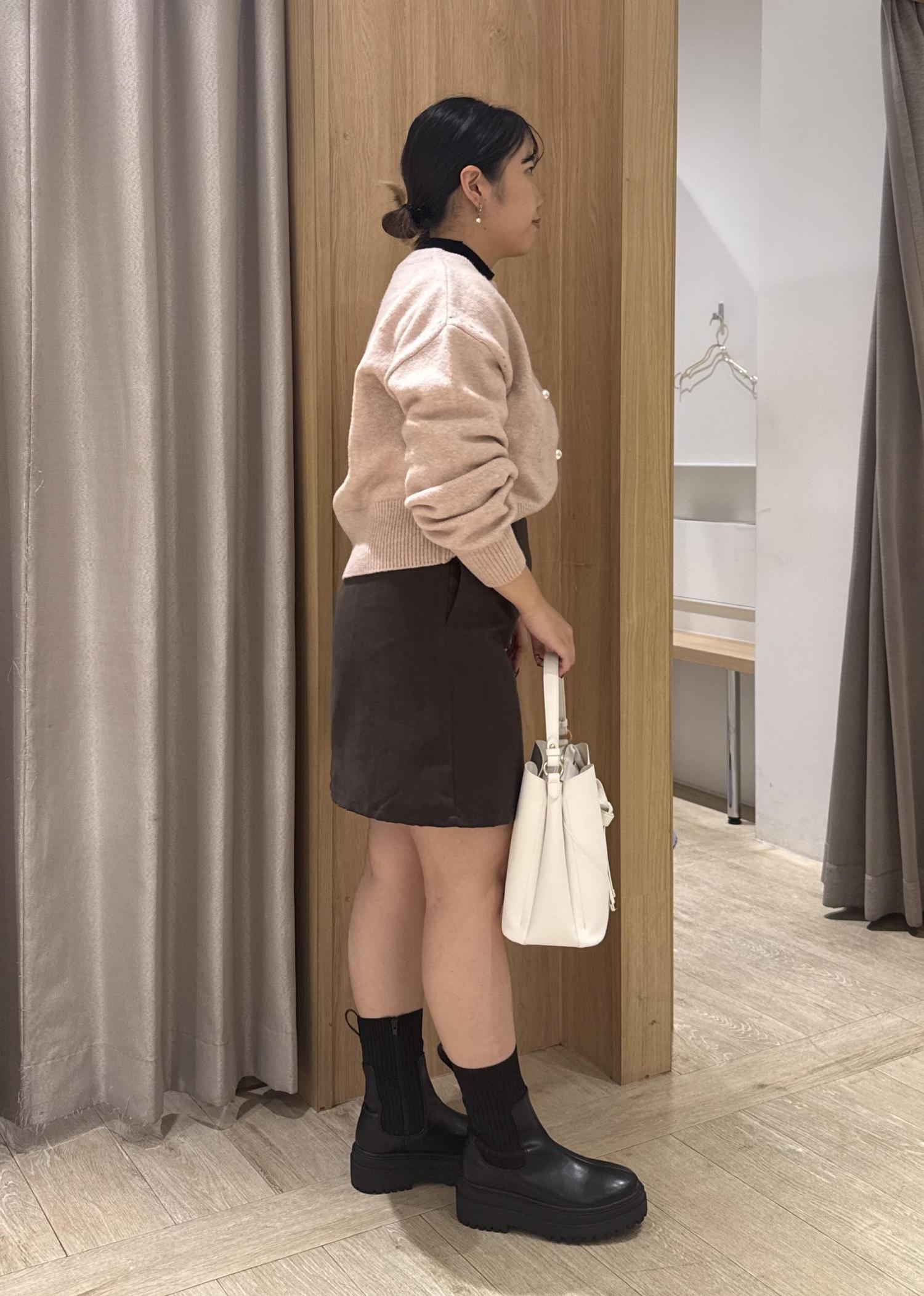 VIS釦ポイントスエードライクミニスカートダークブラウン / F¥5,929レビュー短すぎないので安心して履いていただけます!