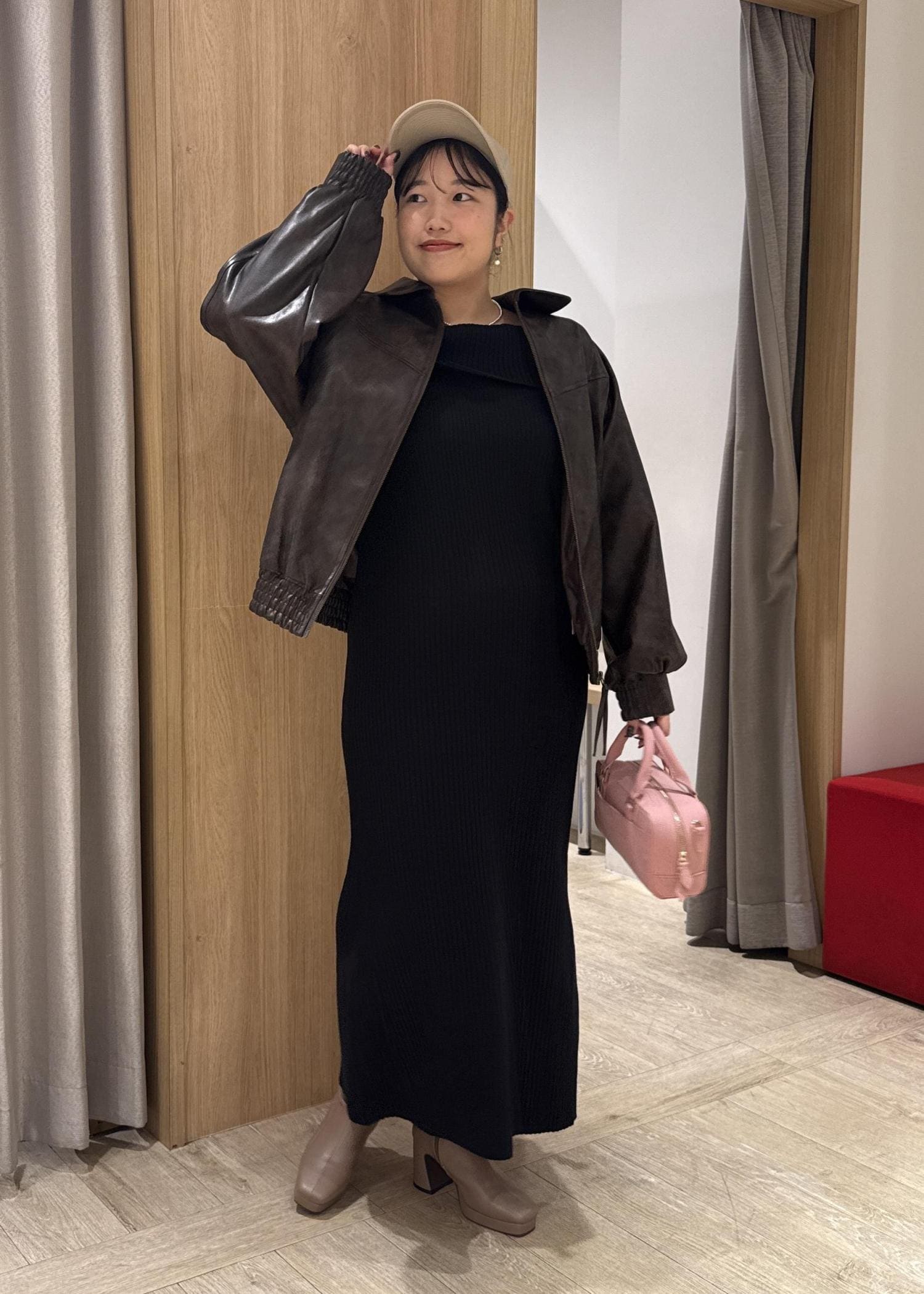 VISアシメオフショルリブニット美シルエットワンピース/着丈が選べるブラック / F¥8,899レビュー柔らかい素材感で着心地◎