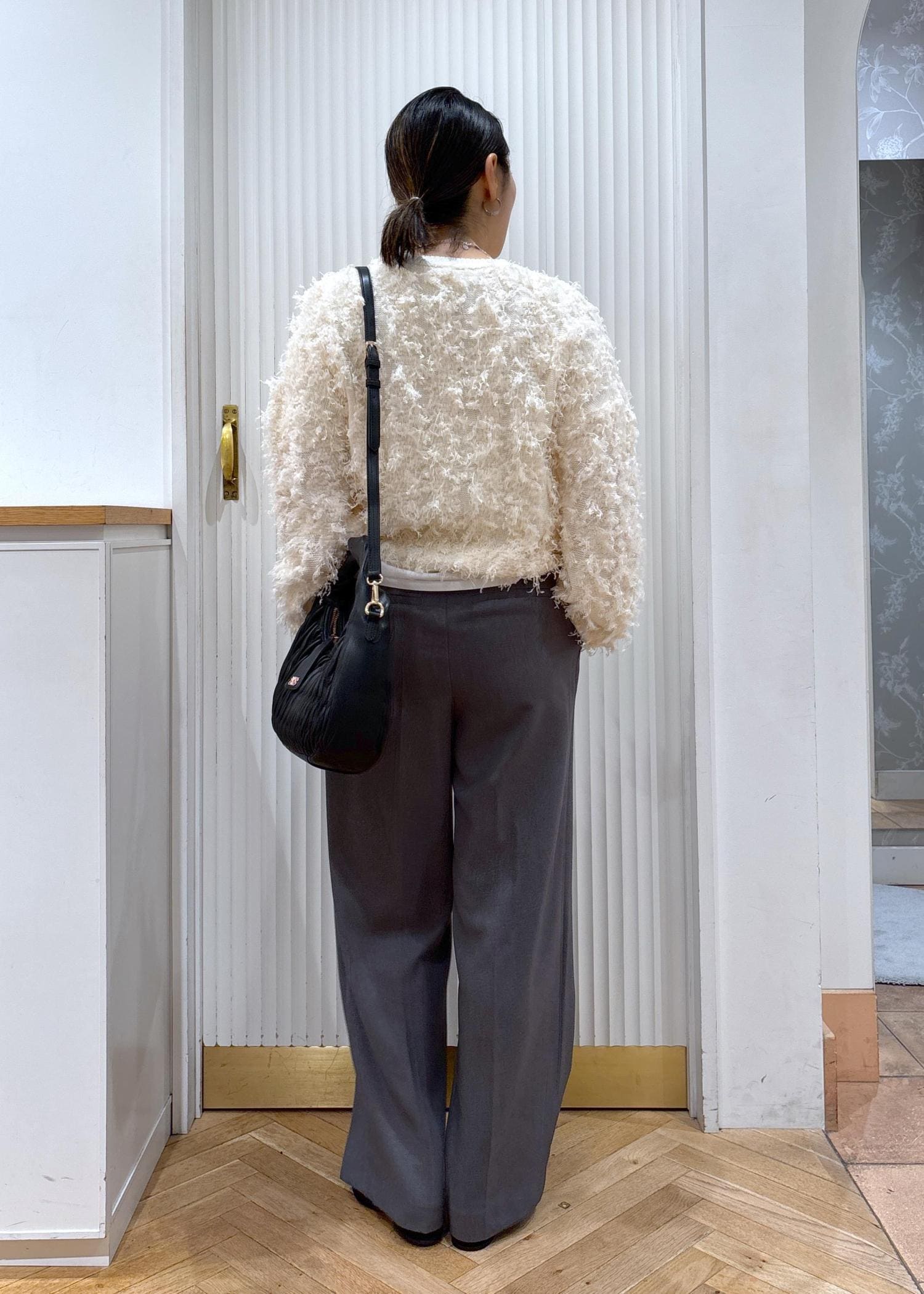 VISリボンヤーンフリンジニットプルオーバーオフホワイト / F¥6,589レビュー毛足の長さがポイントのフリンジニット。157cmで腰丈でした。ボリューム感のあるニットですが身幅のゆったりしたカジュアルなシルエットなので着膨れせず、デニムやマーメイドスカート等、幅広く合わせやすい1着です。