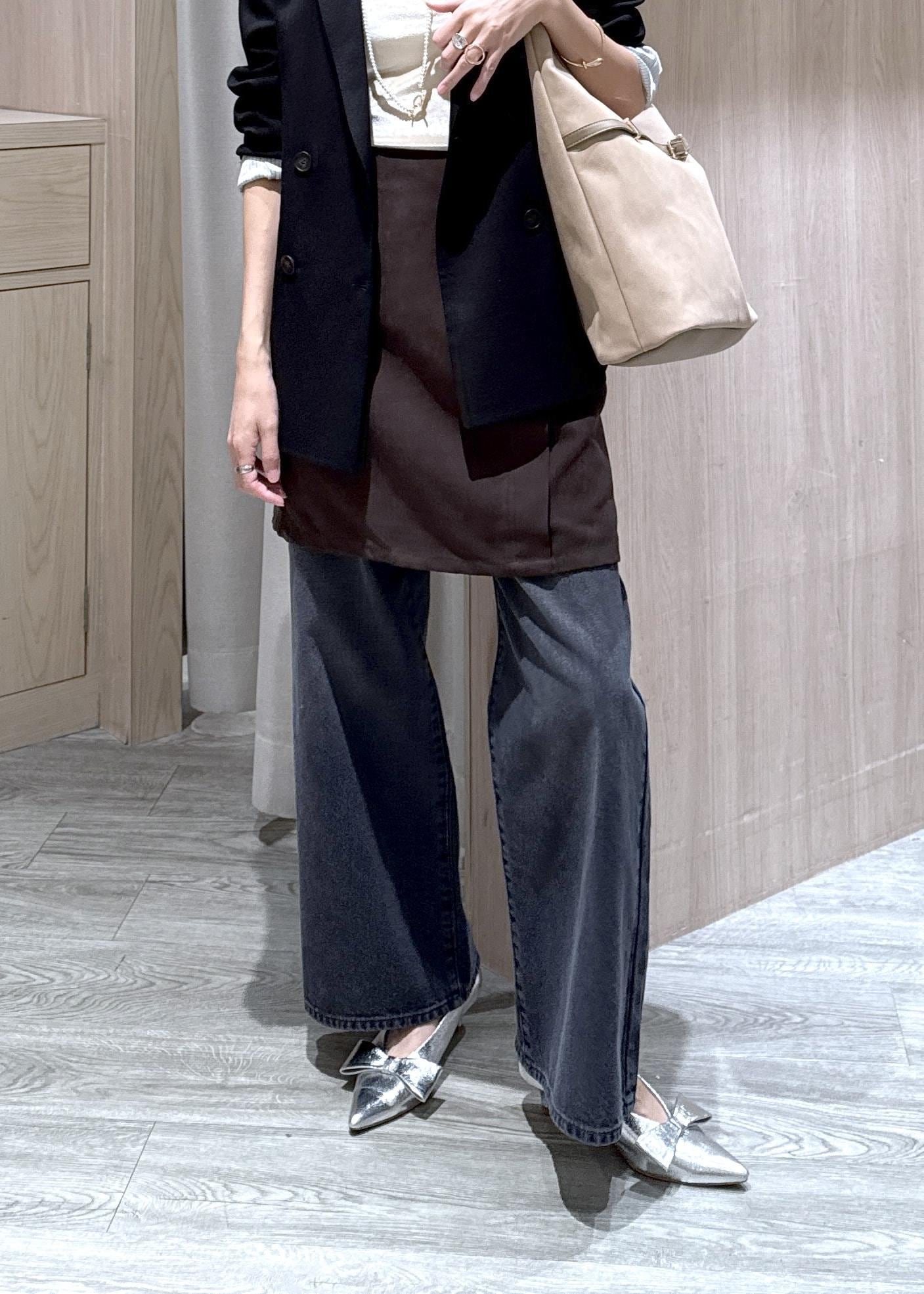 女性らしいフォルムなのでフォーマルスタイルから、カジュアルにデニムと合わせて甘辛MIXで履くのもおすすめ⭐︎ -