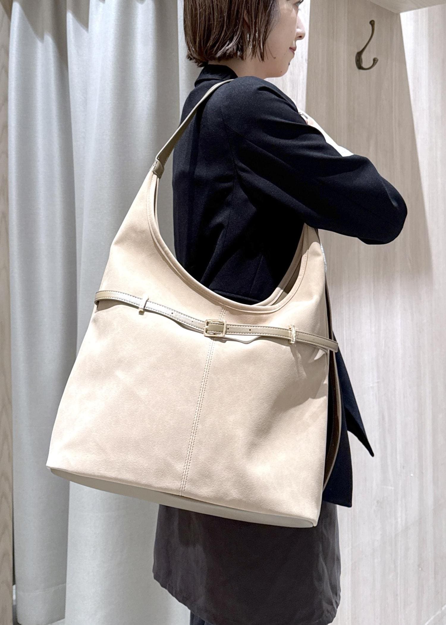 VIS【A4収納】フロントベルトソフトショルダーバッグベージュ系 / F¥5,535レビュー横にすっぽりパソコンが入る大きさでした◎