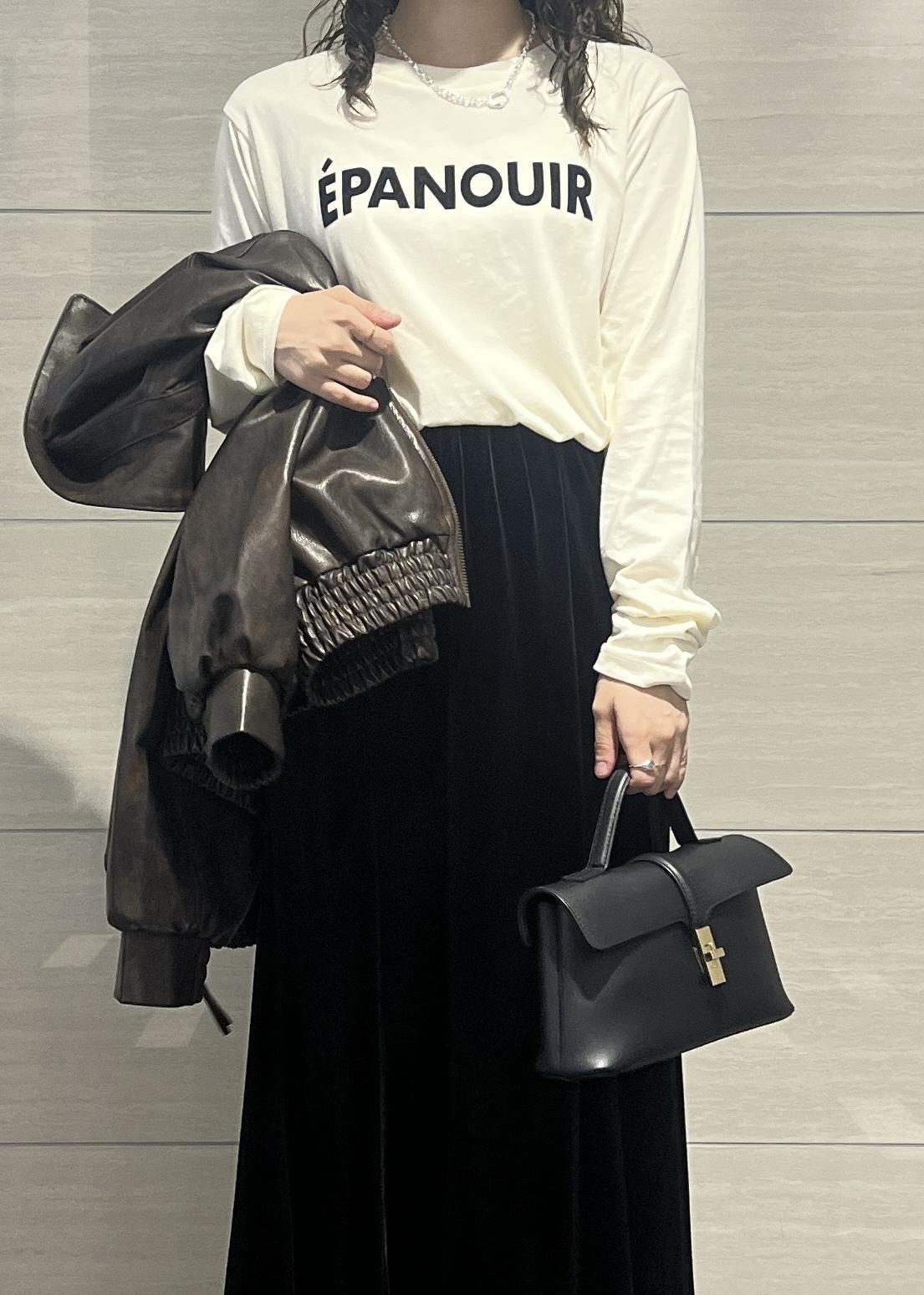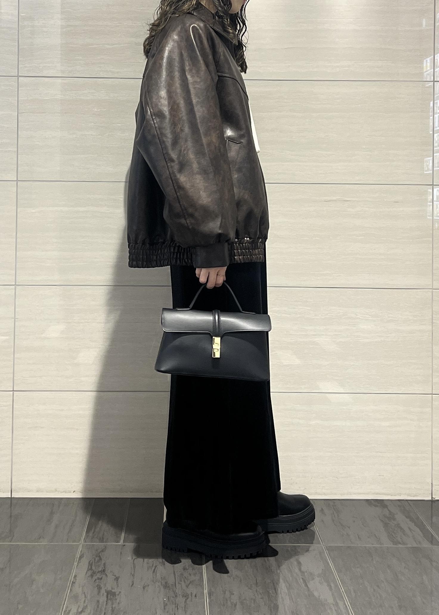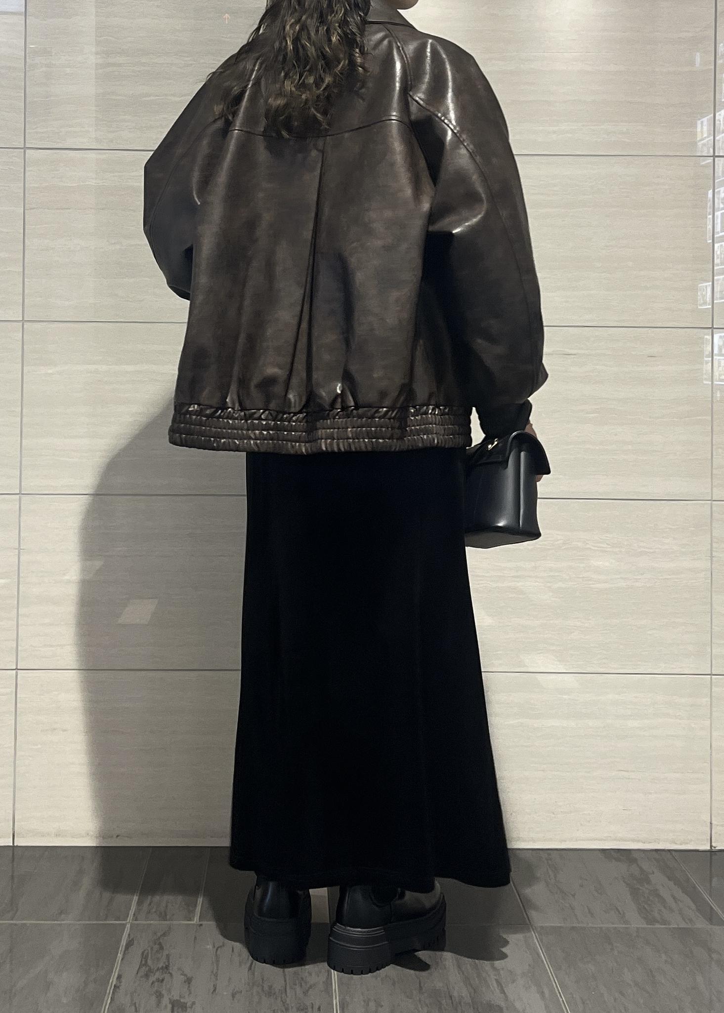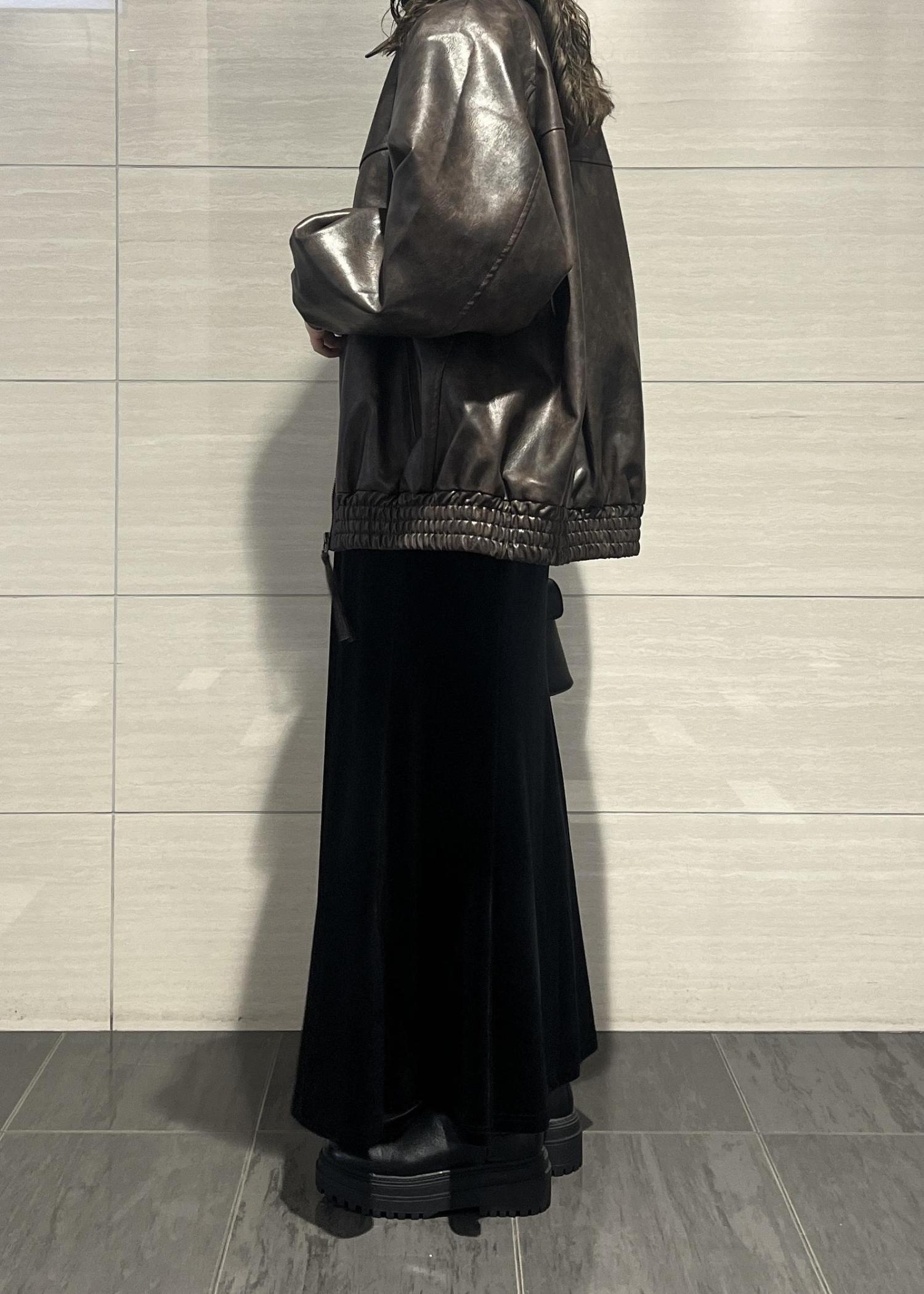落ち感のあるベロア素材で、シルエットがとてもきれいでほどよいフィット感でラインを拾いすぎず、すっきり見えます。 -