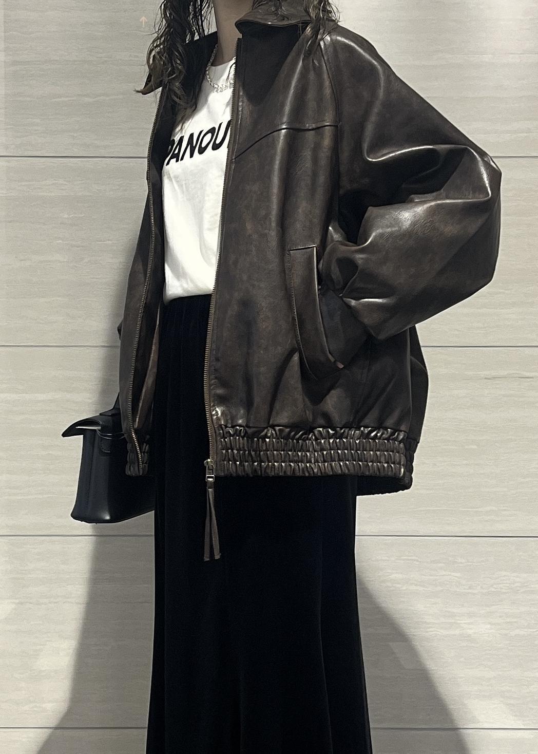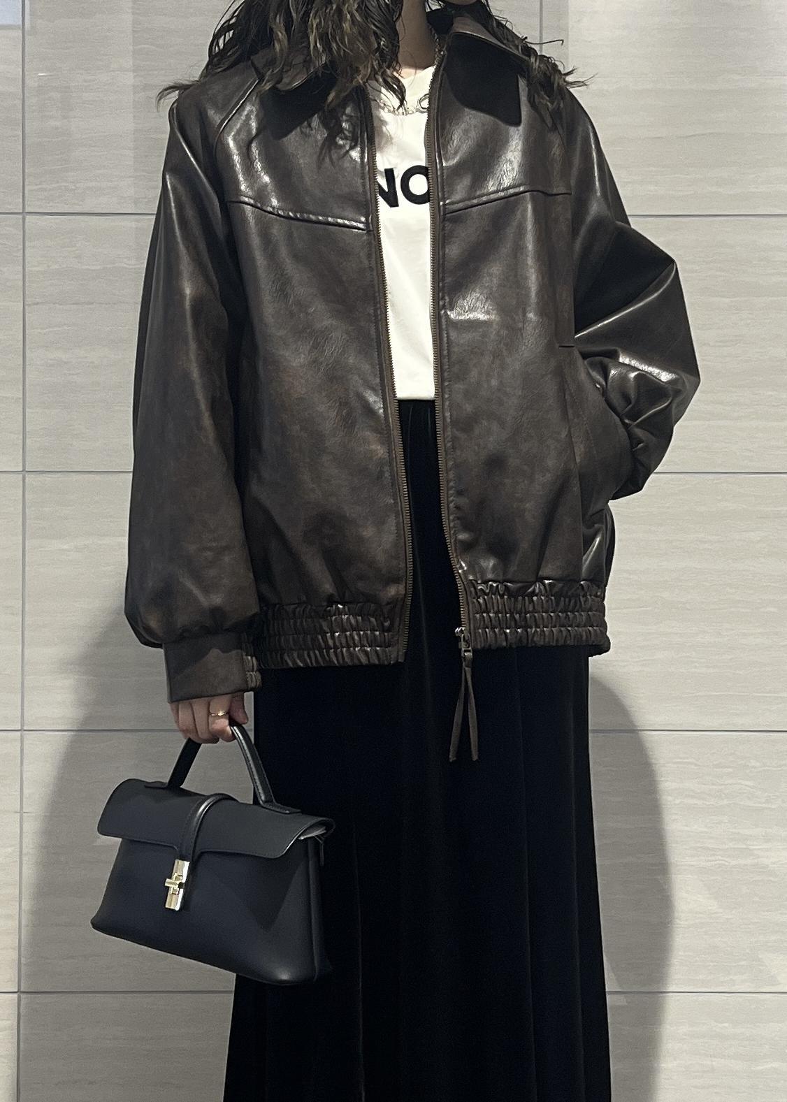 VIS合皮&スエードライクジップアップブルゾンダークブラウン系 / F¥10,989レビューヴィンテージ風の合皮がこなれた印象のジャケット。