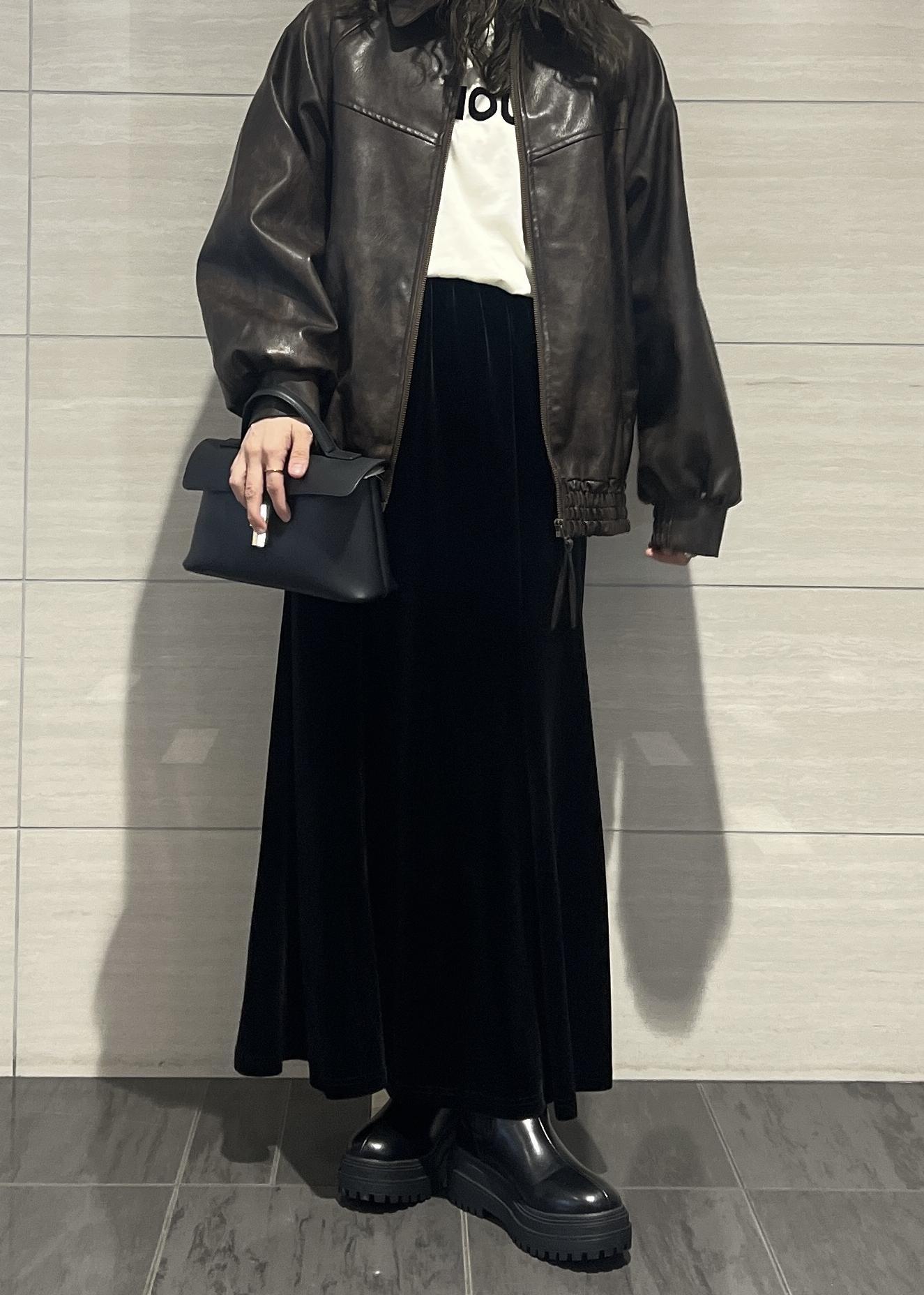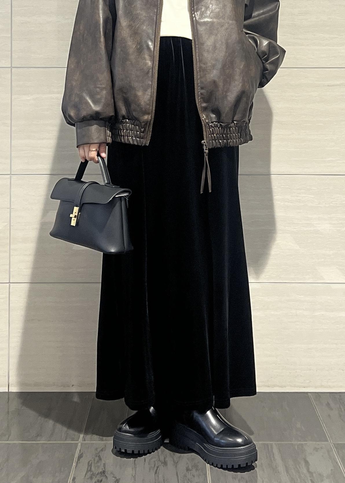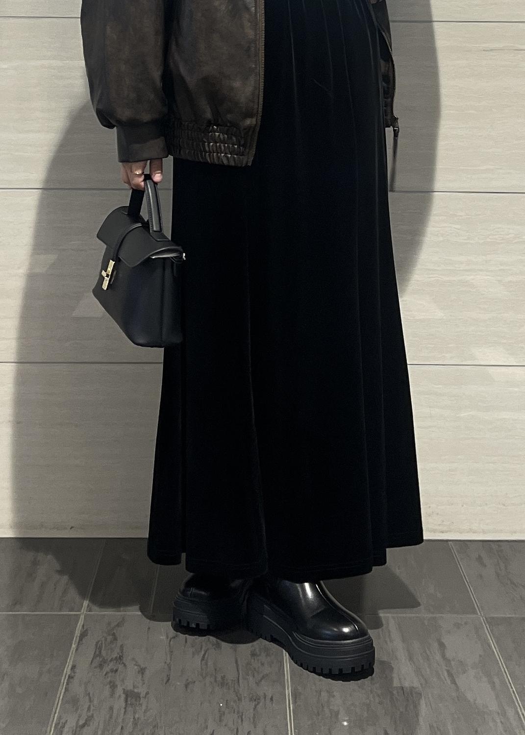 VISベロアナロースカートブラック / S¥6,589レビュー152cmでSサイズを着用、くるぶしがしっかり隠れる丈感です。