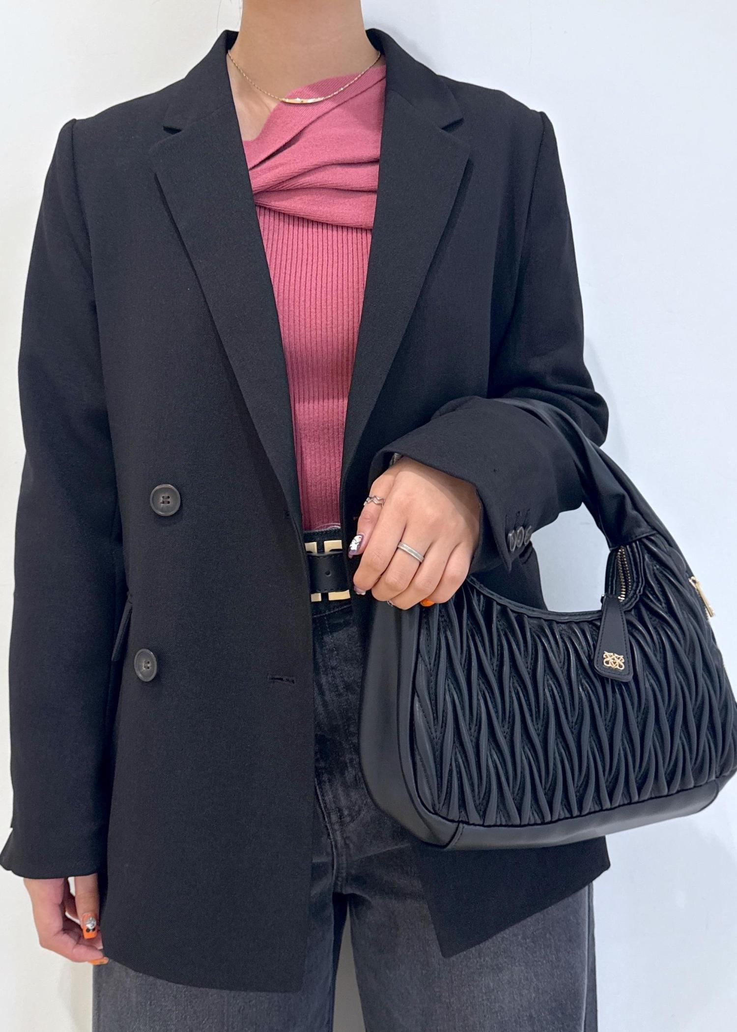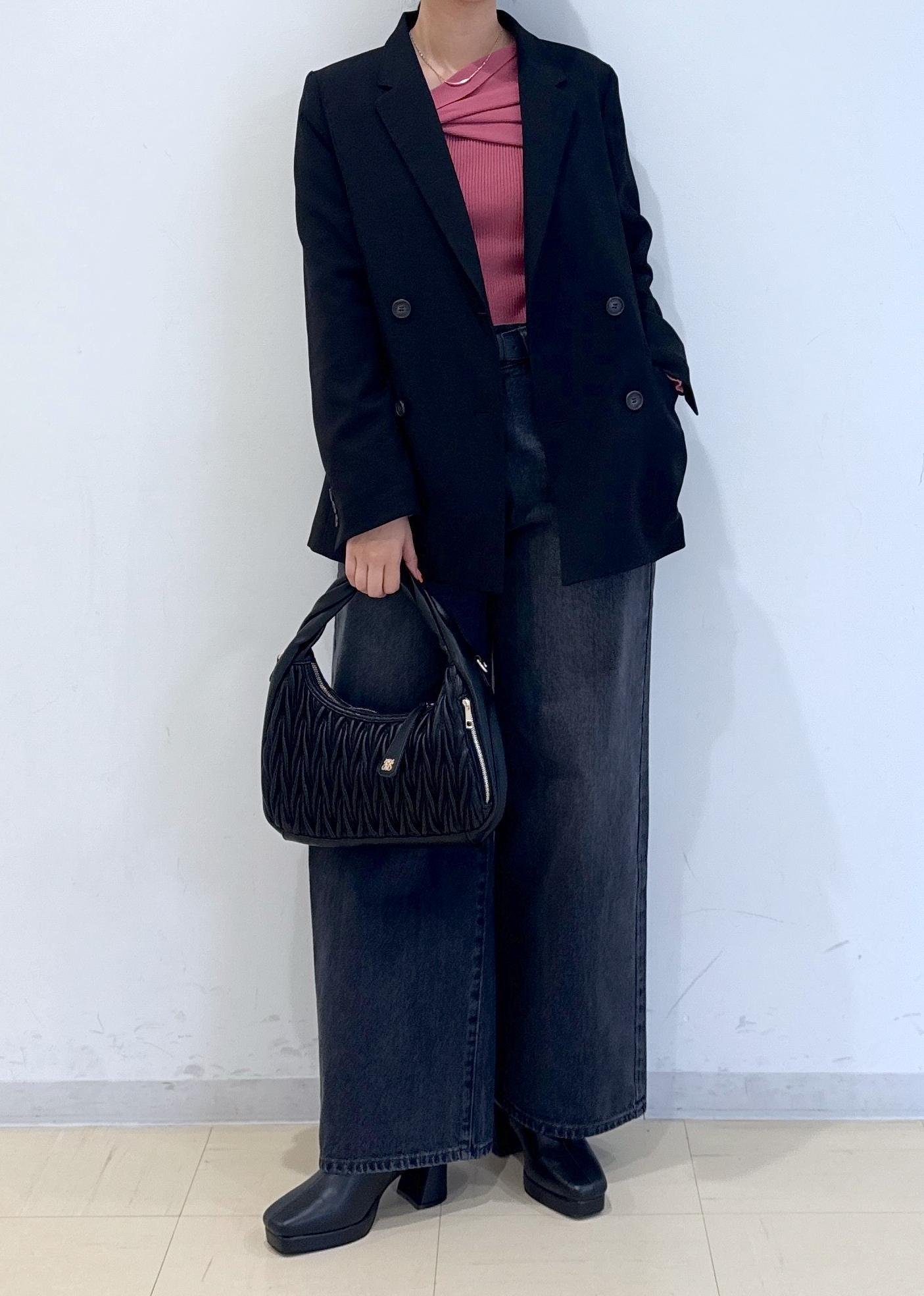 VIS【美easy】ウーリッシュダブルブレストテーラードジャケット【セットアップ対応/洗える】ブラック / M¥8,899レビューかなりフィット感のあるジャケットで、オーバーめで着たい方はいつもよりワンサイズ大きめを選んだ方がいいと思います。肩パットが少しだけ入っているので、なで肩の方でもしっかり決まります。軽くてはおりやすいです