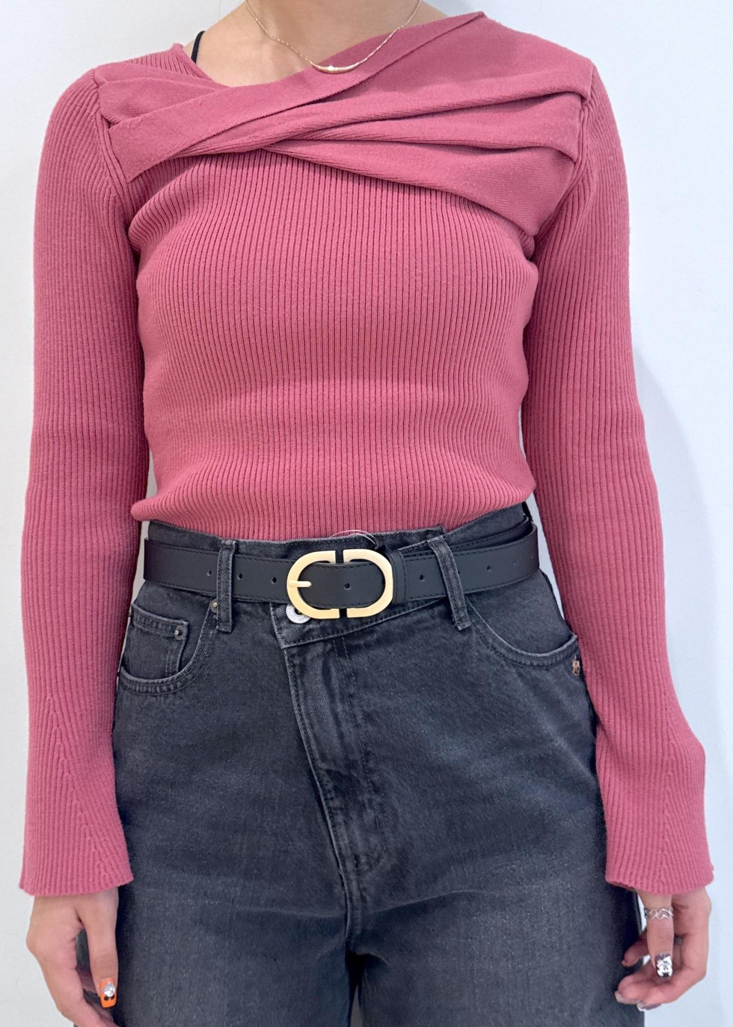 VISアシメねじれデザインリブニットローズピンク / F¥5,489レビュー体にフィットしすぎない生地感で、首元の開き具合もちょうど良かったです。程よく女性らしいラインを拾ってくれて、いやらしくないシルエットでした。