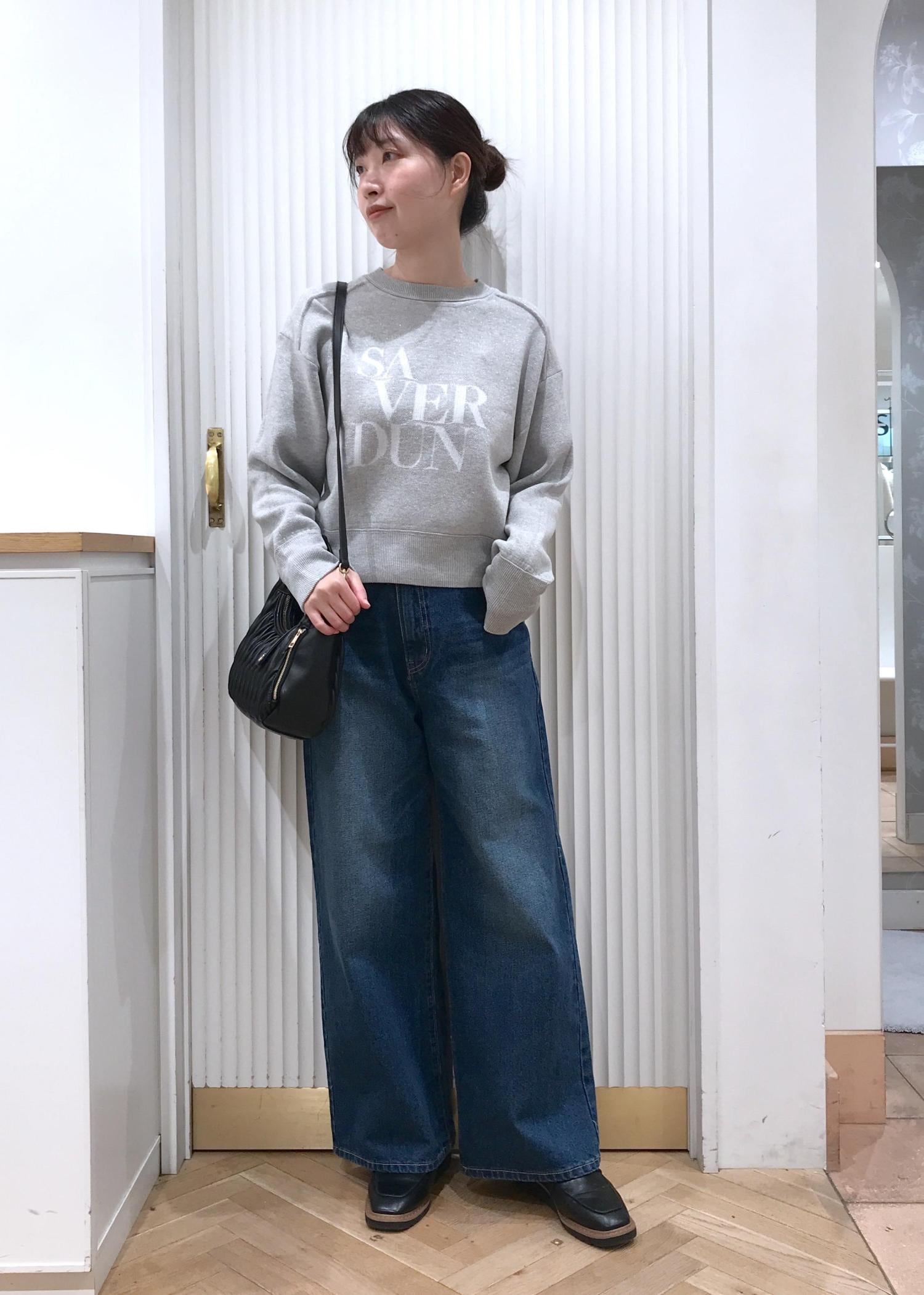 定番ニット×デニム合わせのコーデに1枚取り入れるだけで、暖かさと可愛いさを両立出来るアイテムです。