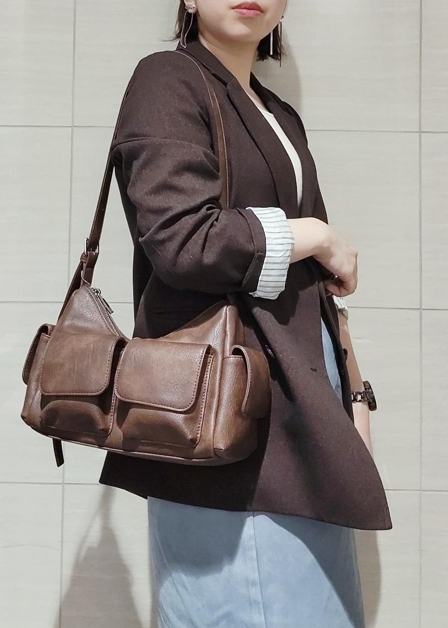 VIS【2WAY】ビンテージ合皮クアトロポケットショルダーバッグブラウン系 / F¥6,919レビュー持ち手の長さが調節可能なので、肩掛けもしやすくできます!