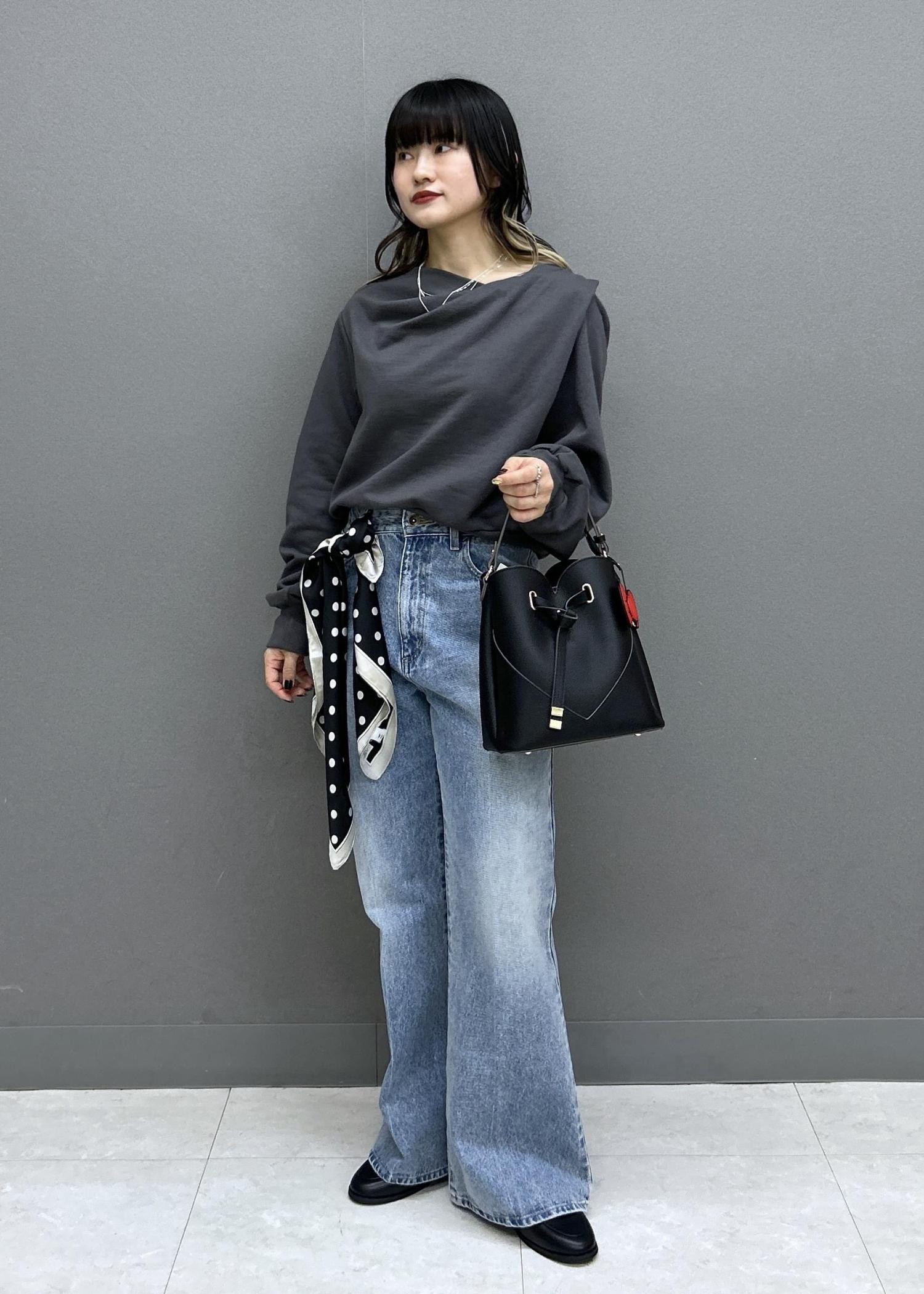 今回はデニム合わせですが、マーメイスカートなど、フェミニンにスカート合わせもオススメです! -