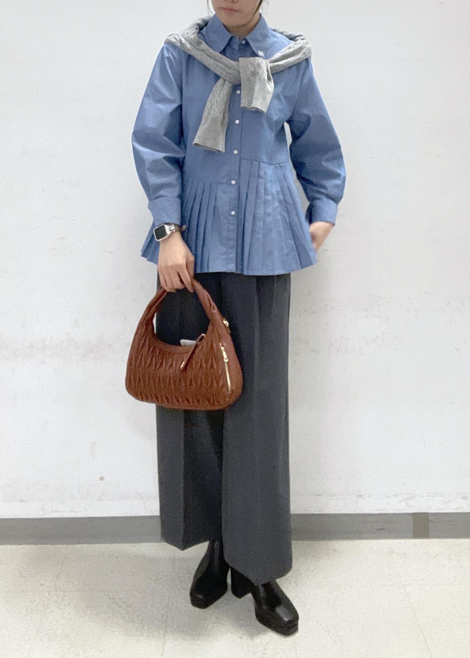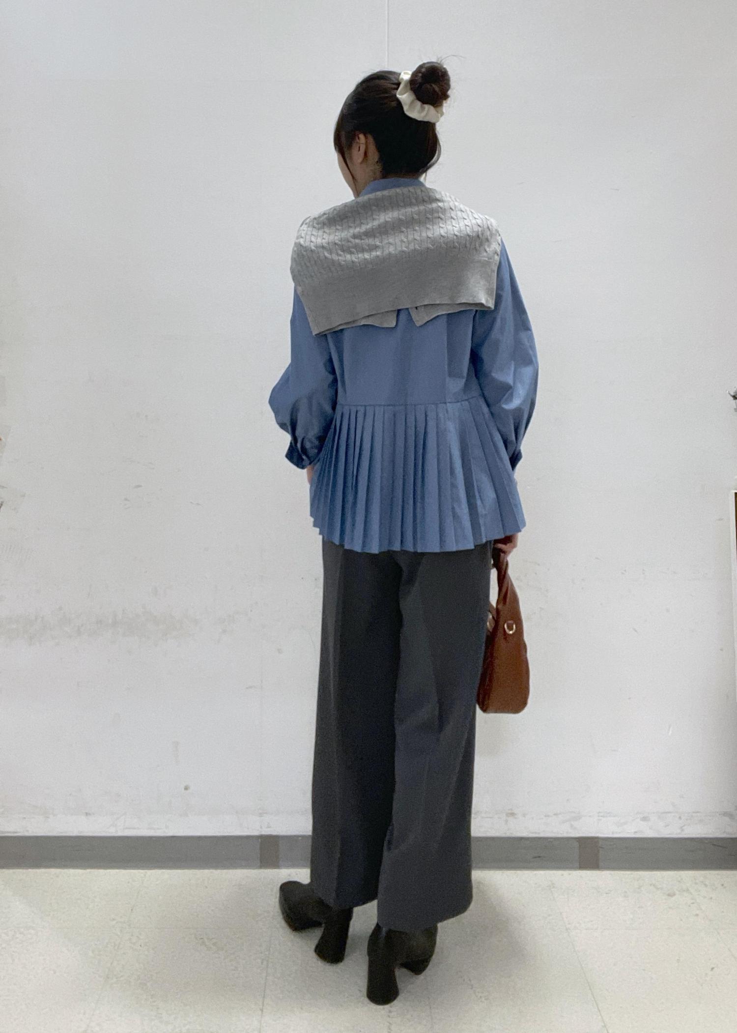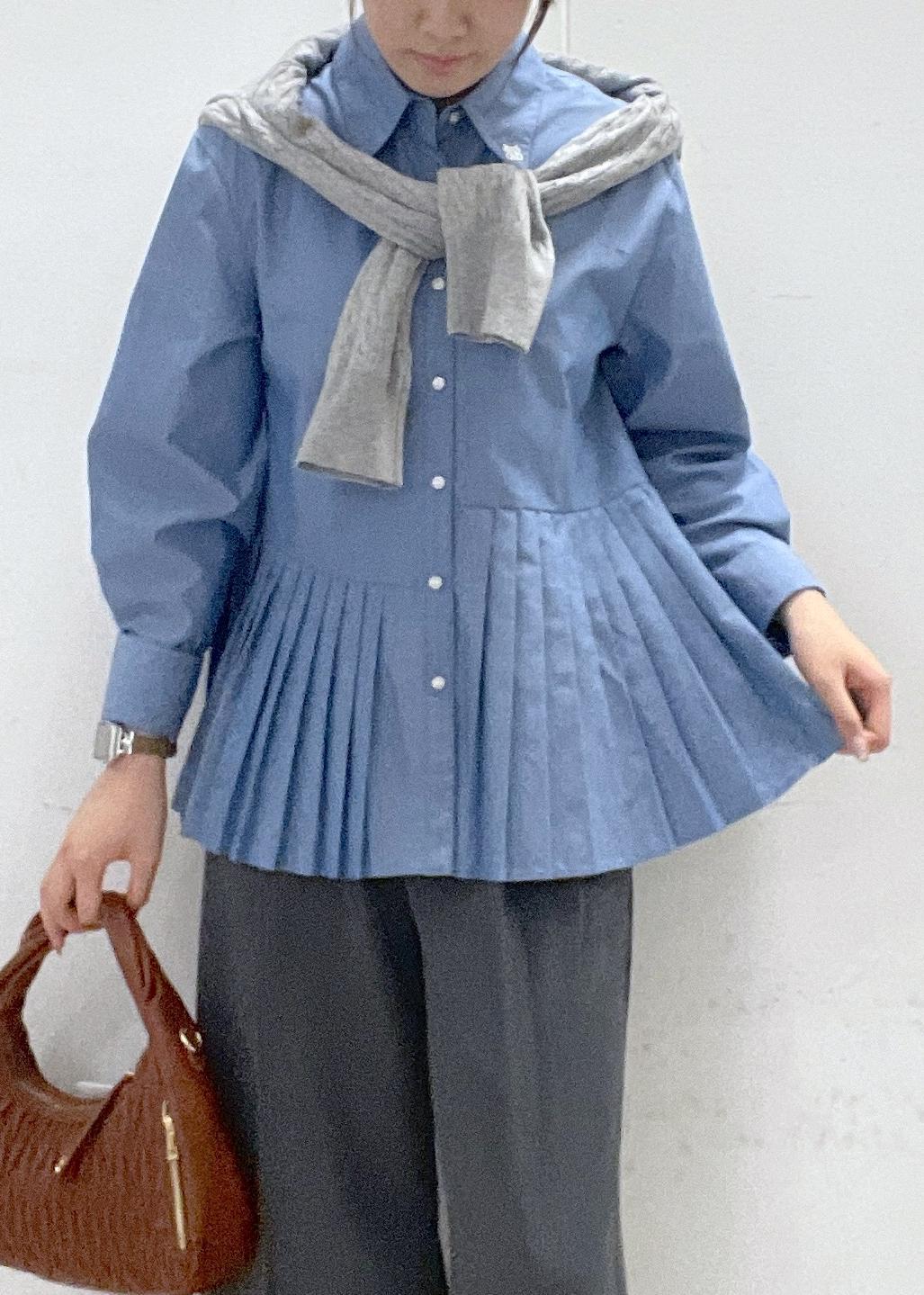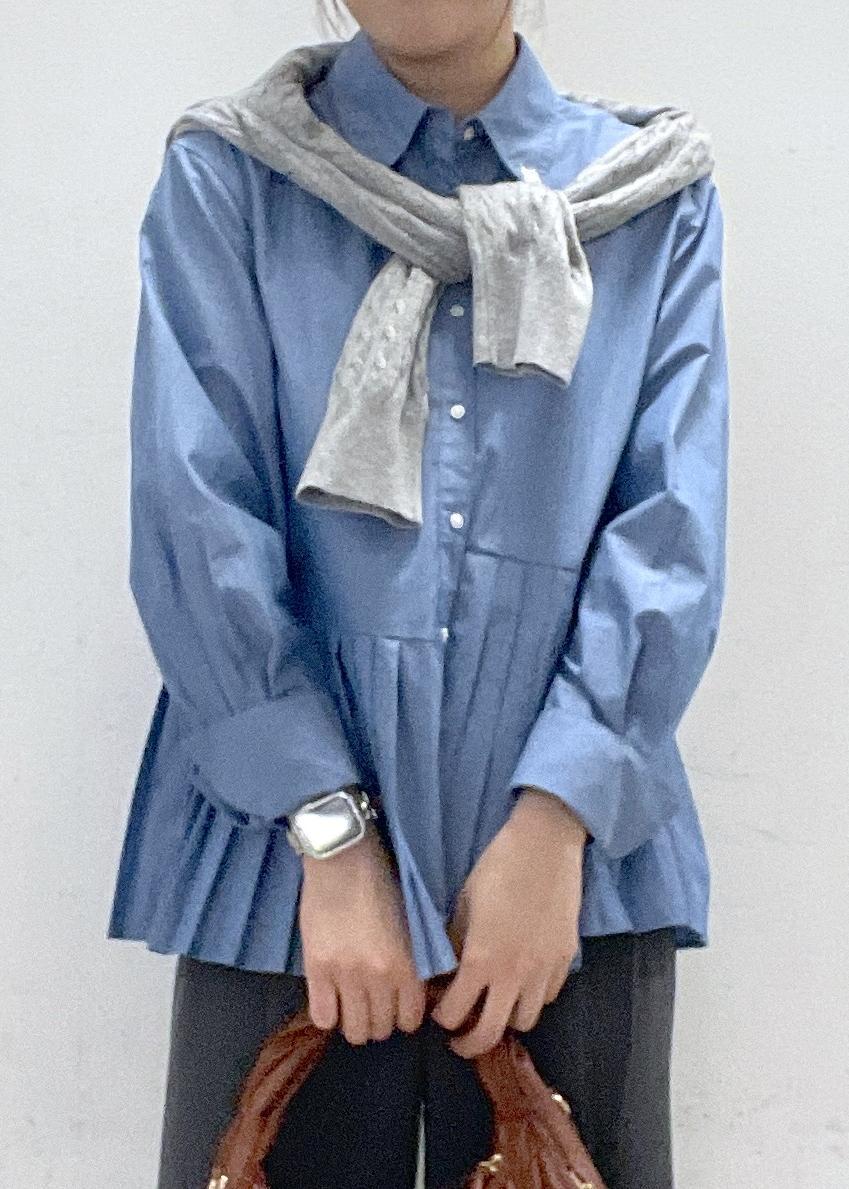 VISプリーツシャツ/イージーケアブルー / F¥6,589レビュー167cmでおしり半分隠れる丈感で、プリーツでふわっとなっているためお腹まわりなども綺麗に隠れてくれます!