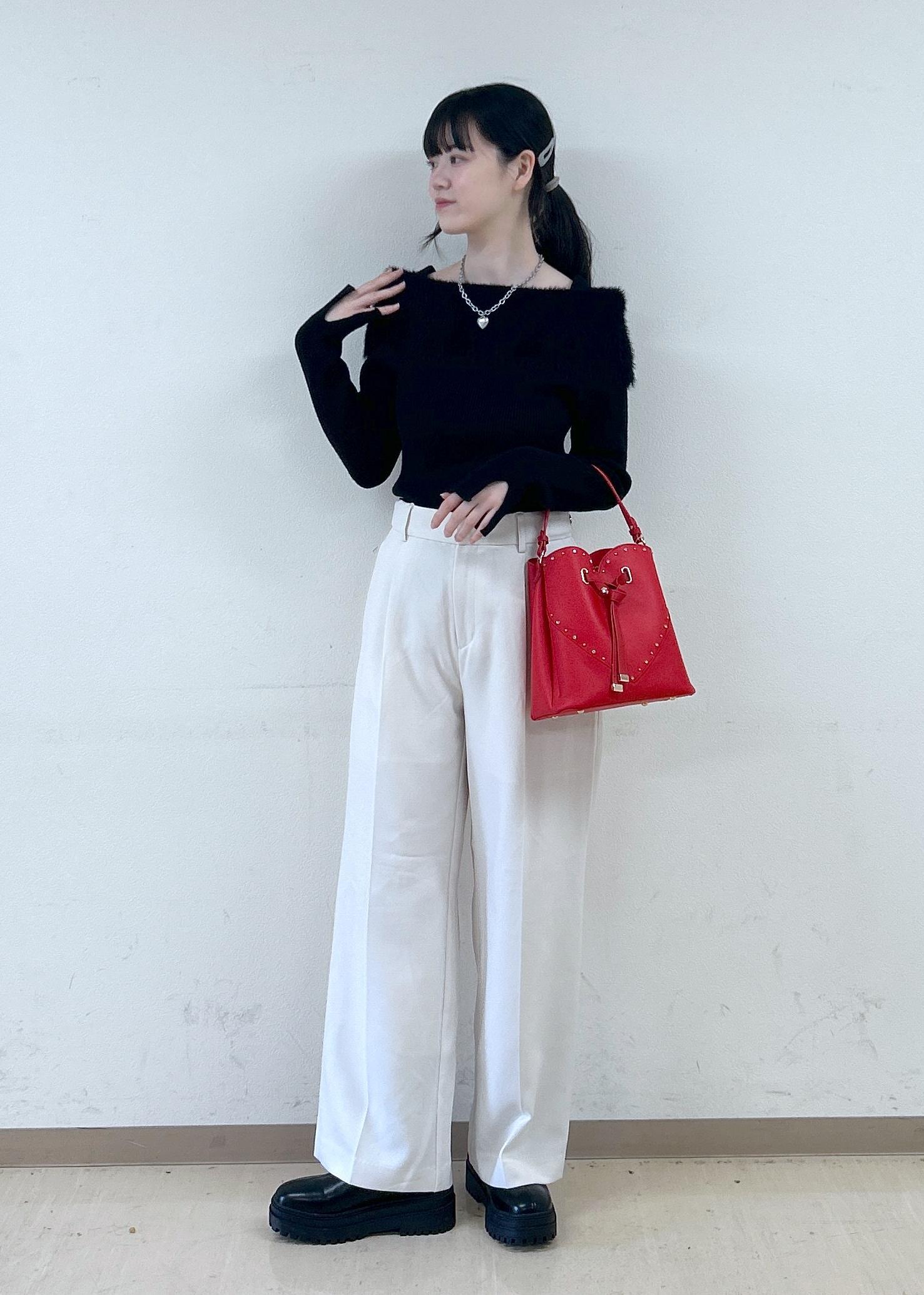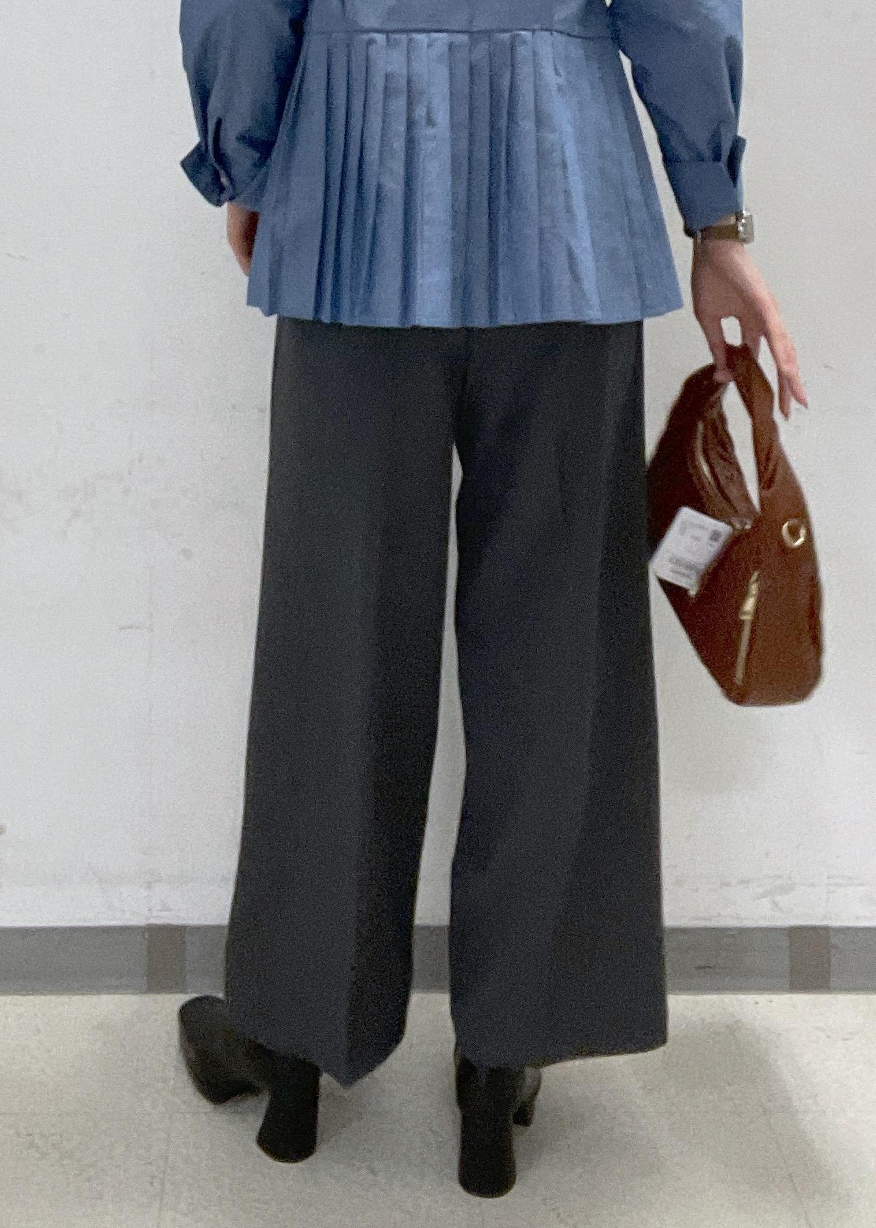 VISベルトディテールタックワイドパンツ/イージーケアチャコール / M¥6,589レビューすそ広がりが大きめのフレアパンツ!!