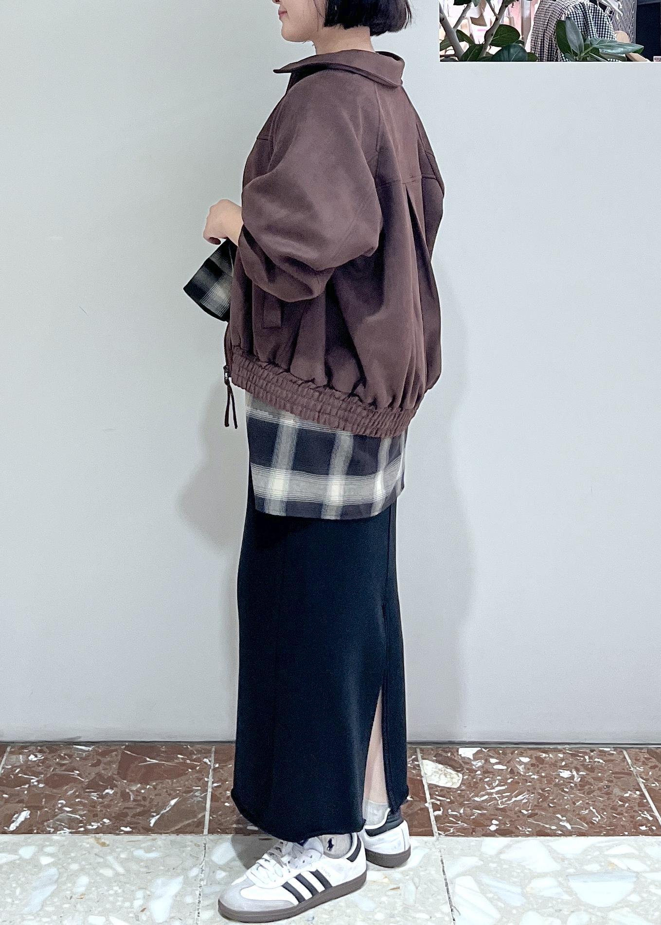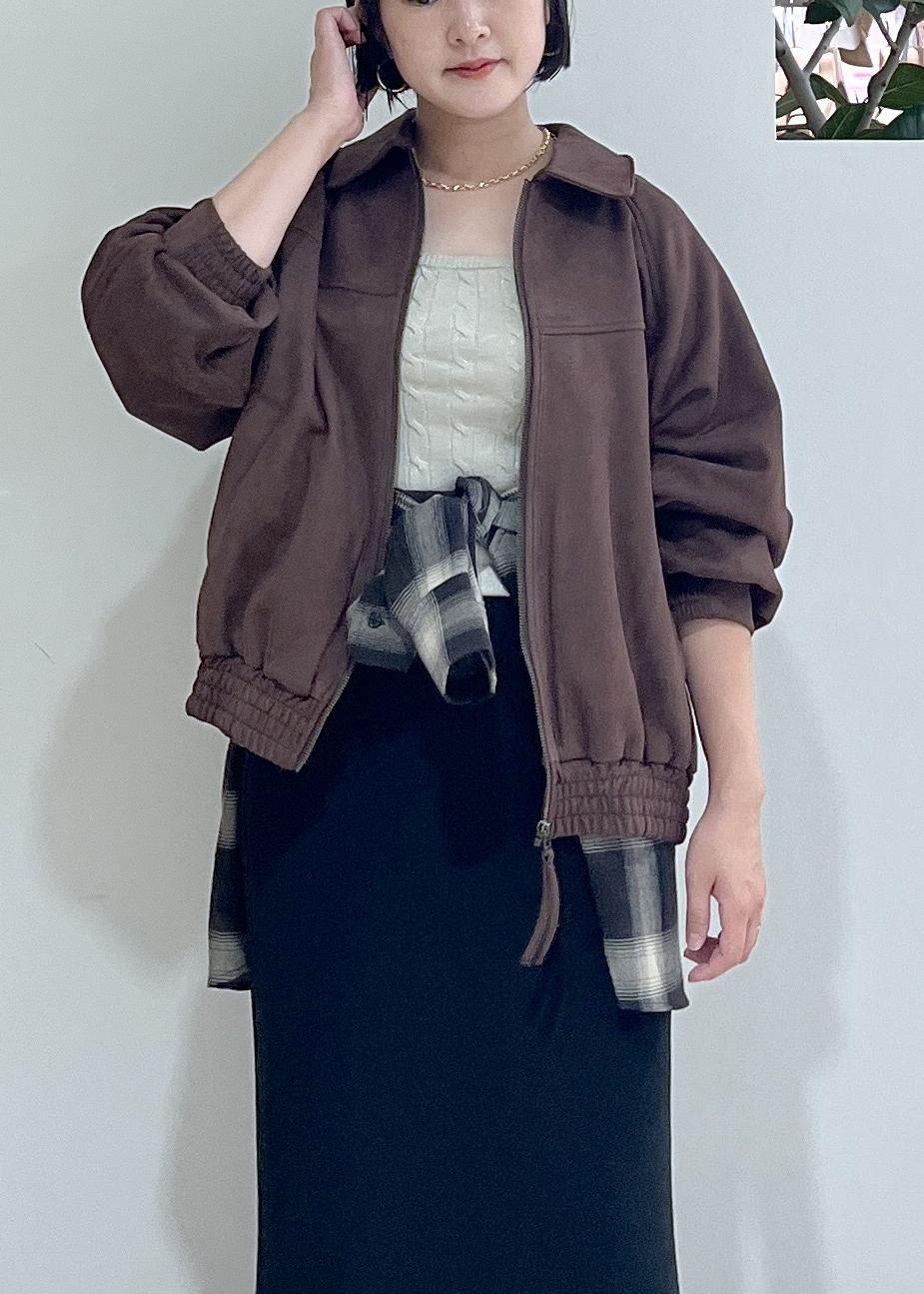 VIS合皮&スエードライクジップアップブルゾンダークブラウン / F¥10,989レビュー顔周りが明るく見える、優しいブラウンカラーのアウターです。