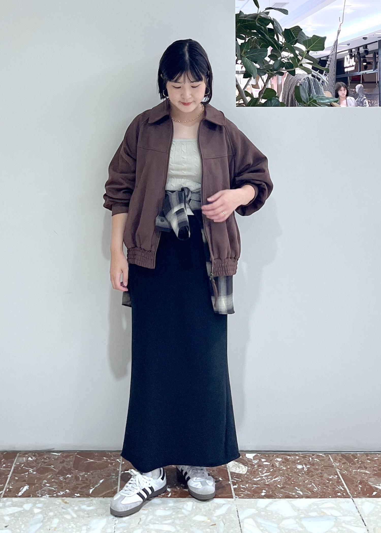 160cmで着丈がややお尻まで隠れるのですっきりとしたボトムでも合わせやすいです。 -