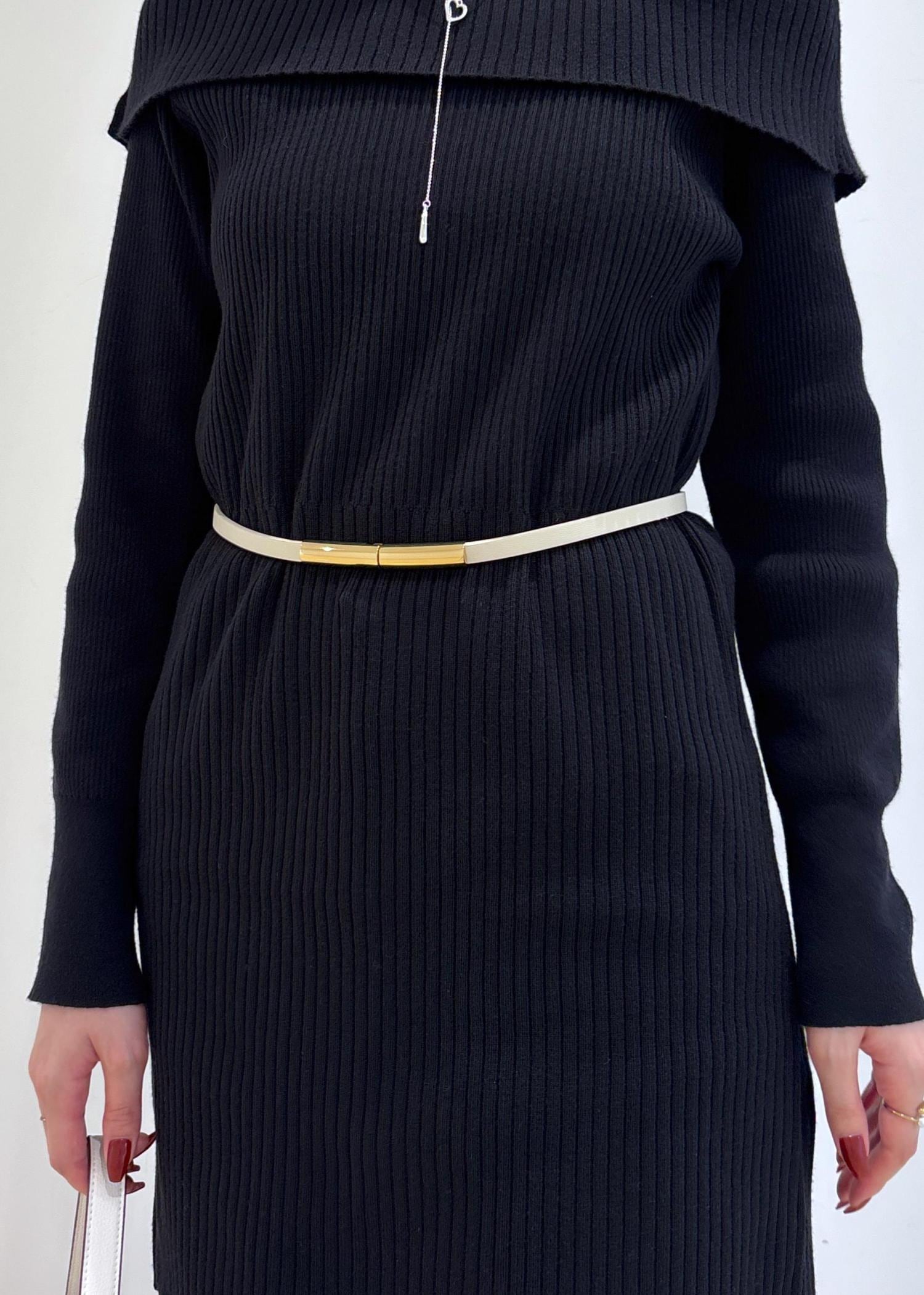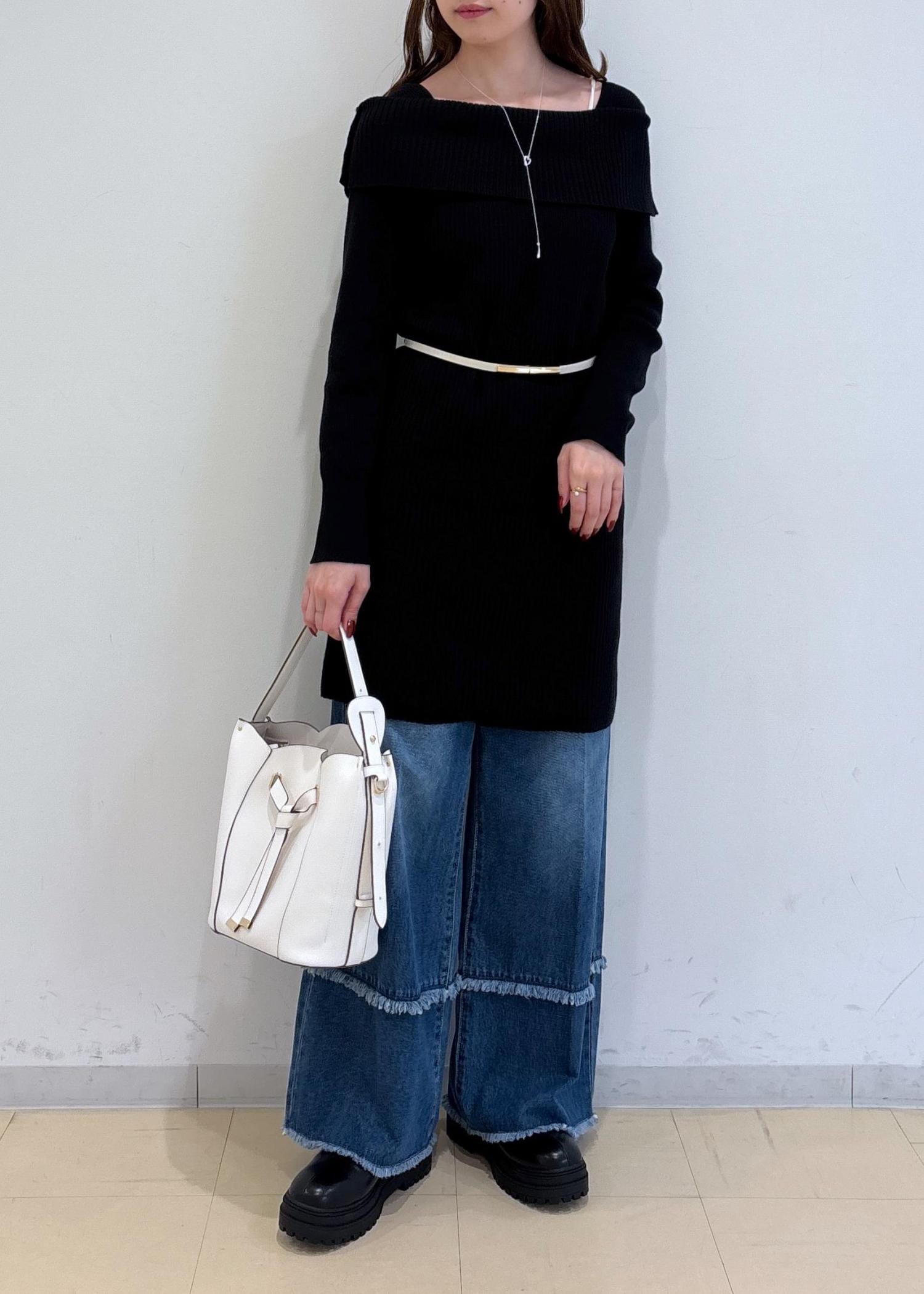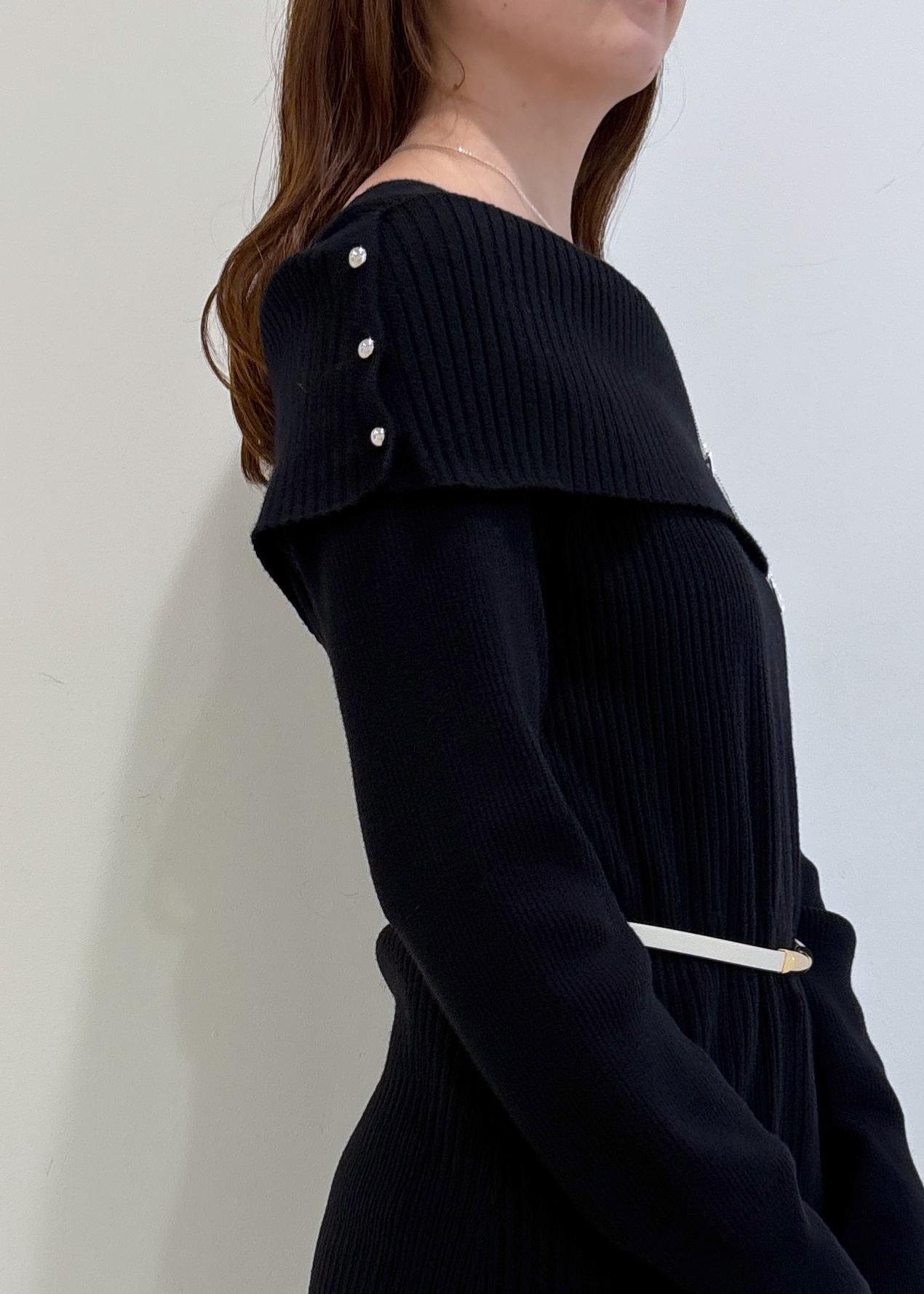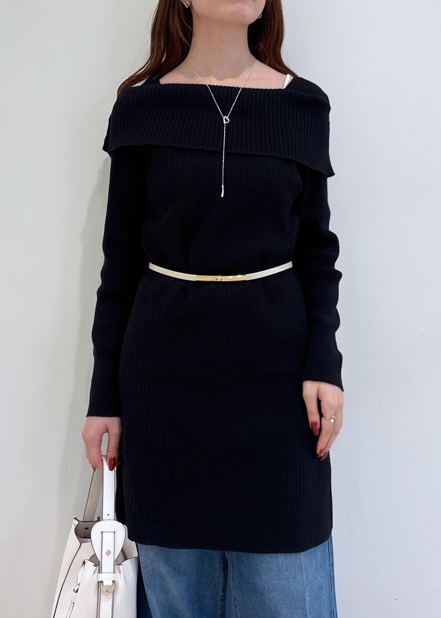 アシメオフショルリブニット美シルエットワンピース/着丈が選べる