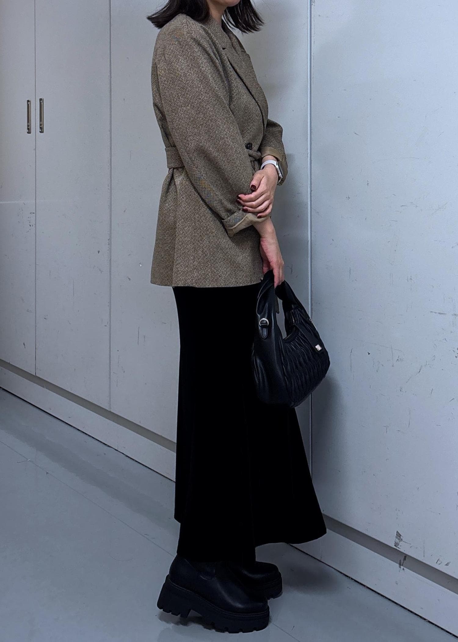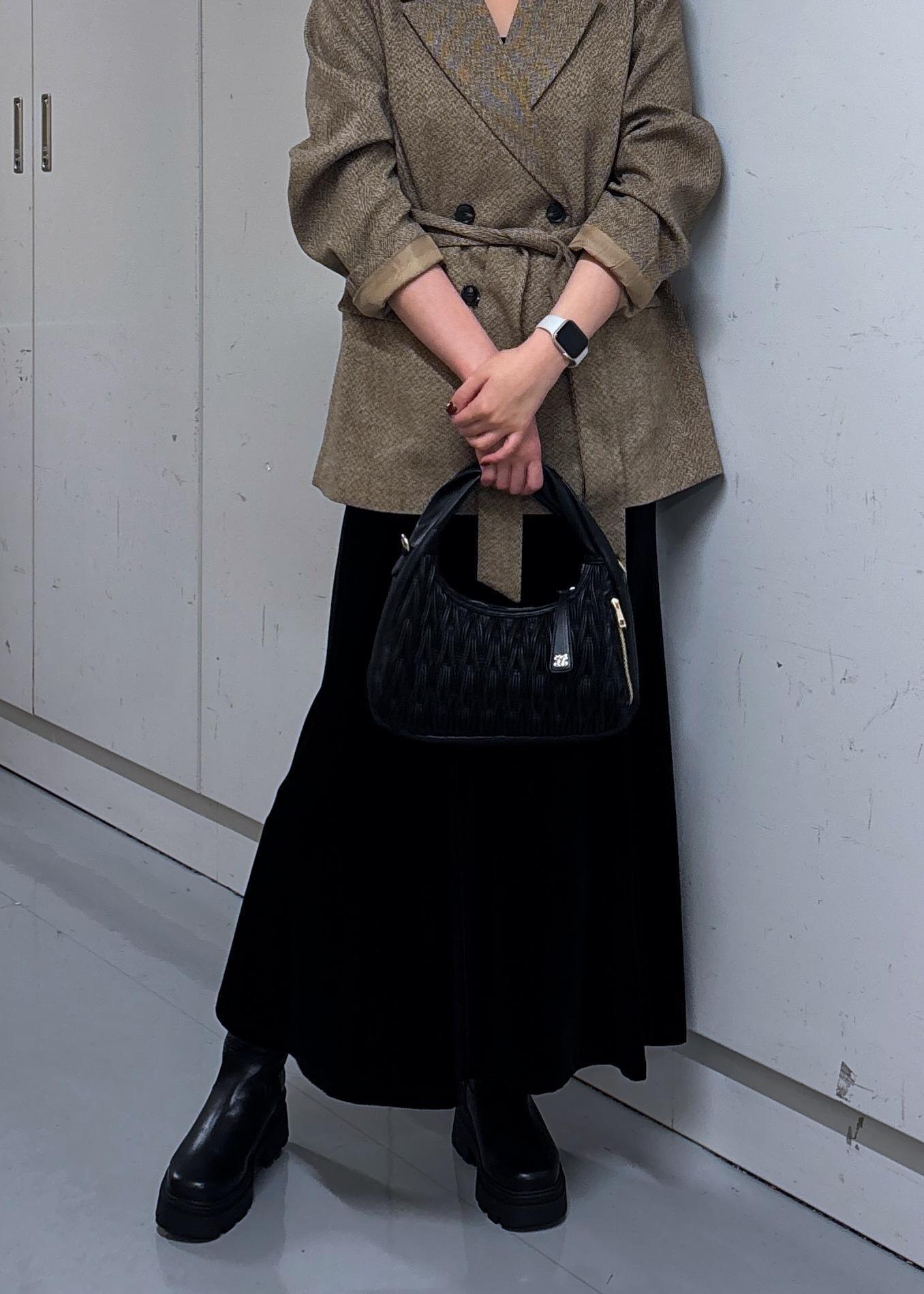 VISベロアナロースカートブラック / M¥6,589レビューウエストは全てゴムなので、締め付け感なくゆったり履けます。ベロアの素材がインナーの凹凸感を拾わないのでどの角度から見てもシルエットが綺麗でした。着丈はくるぶしかかるくらいだったので長めです。