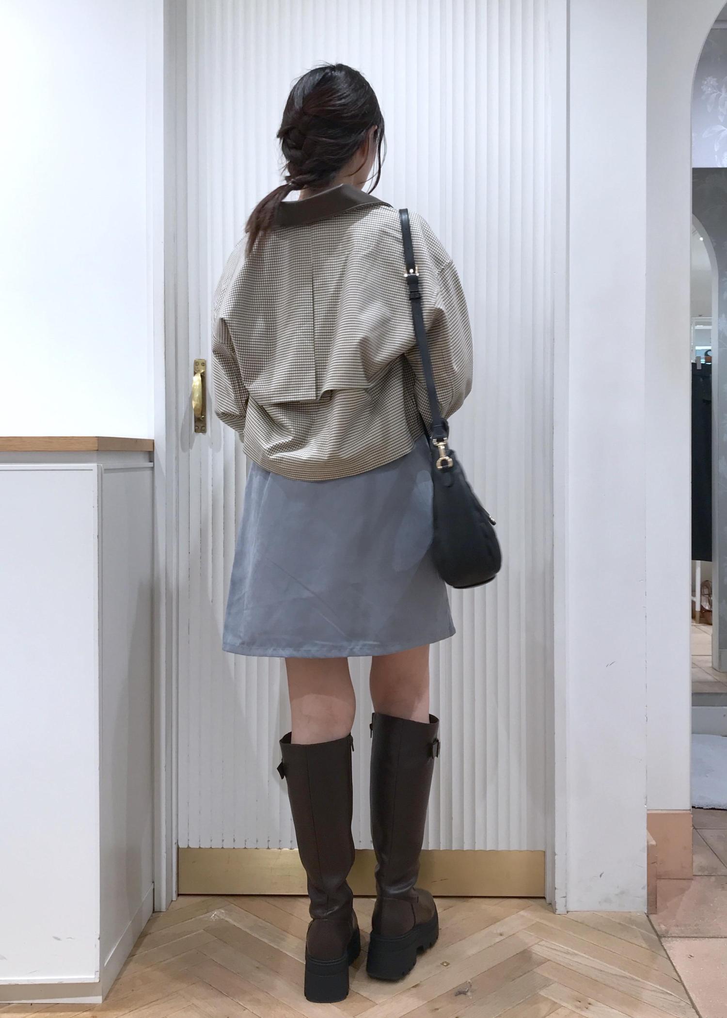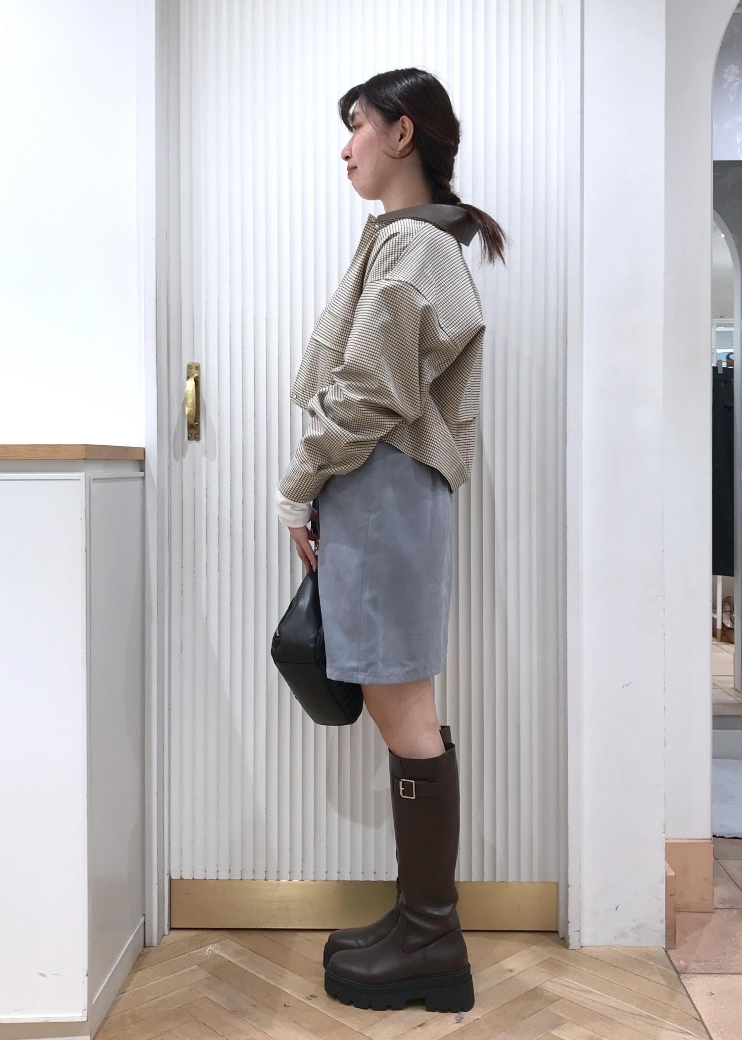 VISのロングブーツが入荷したので、ミニスカートを合わせたコーデにしてみました。