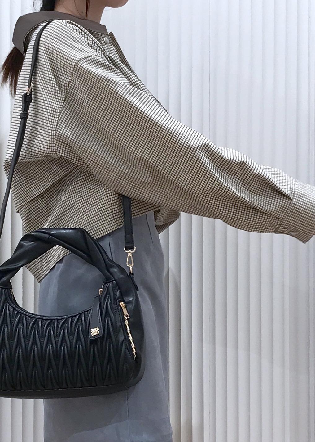 VIS【2WAY】ねじりハンドルキルティングバッグブラック / F¥7,909レビュー表面のキルティングが可愛いねじりハンドルバッグです。