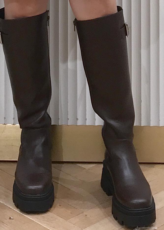 VISサイドバックルタンクソールロングブーツダークブラウン / L¥10,989レビュー丁度膝下部分が隠れる位の長さで、ふくらはぎ部分は余裕がありますが、足首部分はややタイト目になっています。