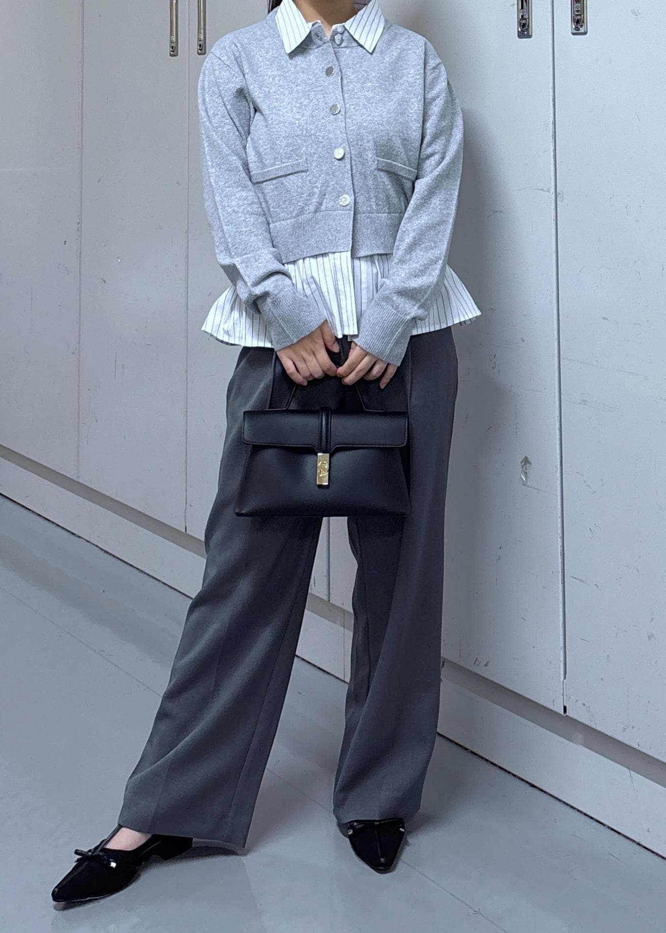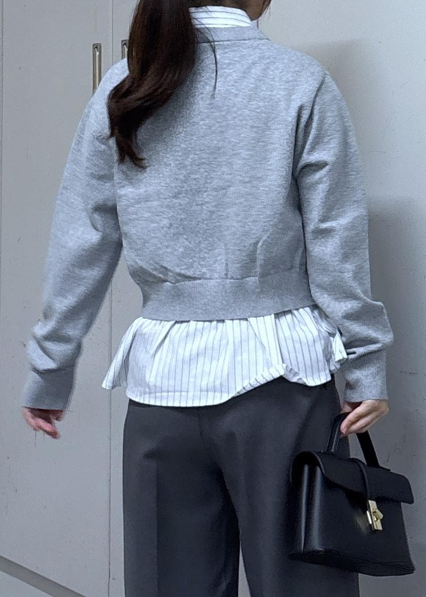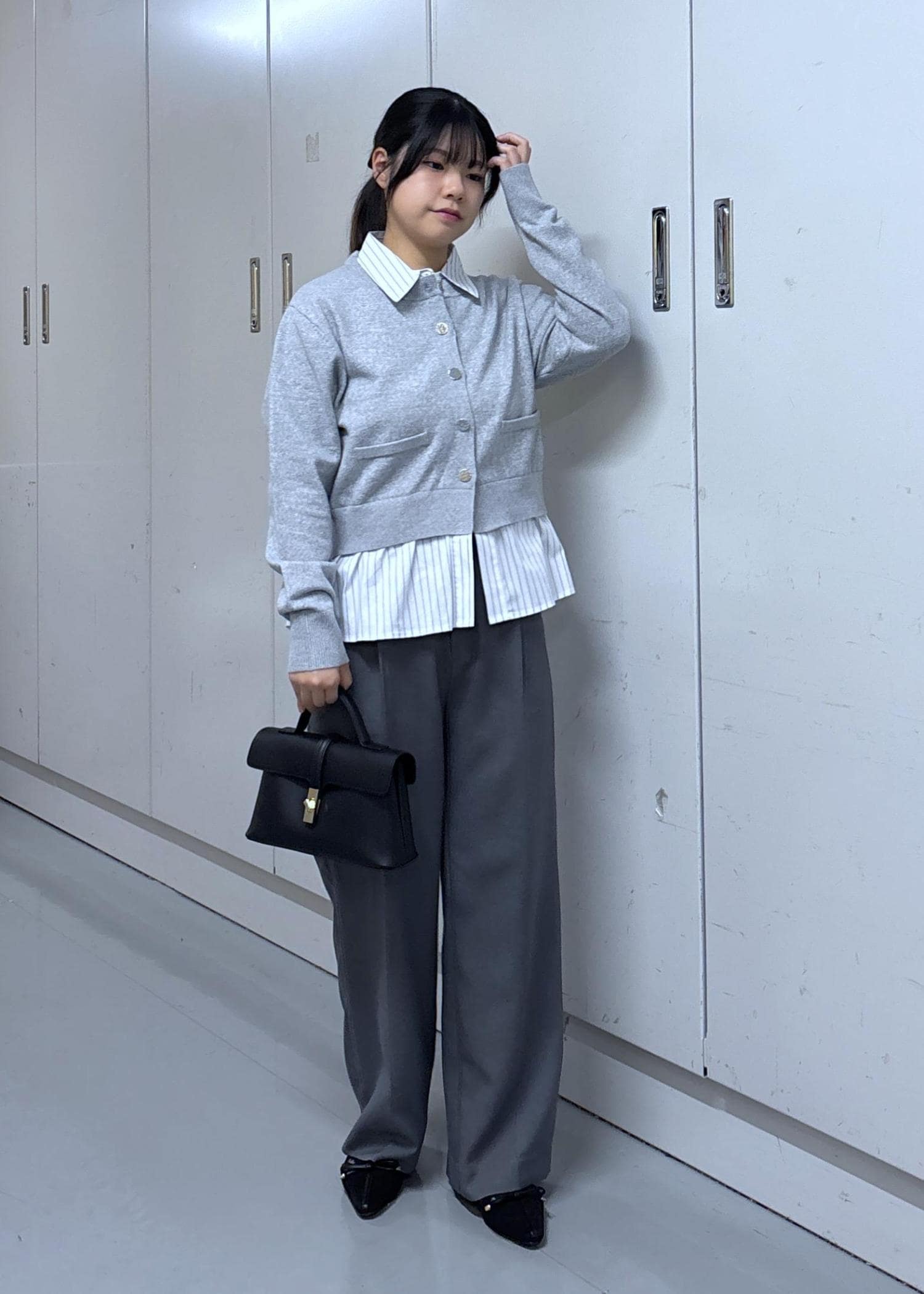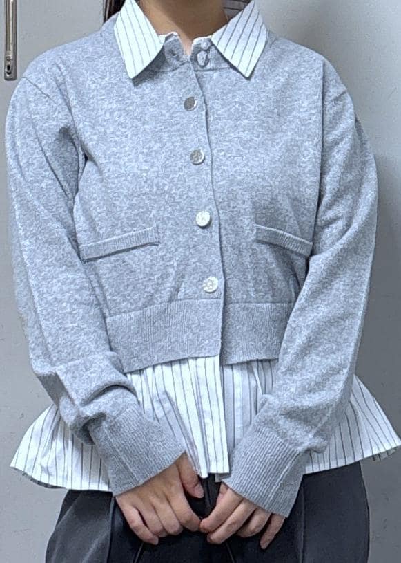 VISシャツレイヤード風メタルボタンカーディガンライトグレー / F¥6,589レビュー153cmで、丈は腰下あたりです。